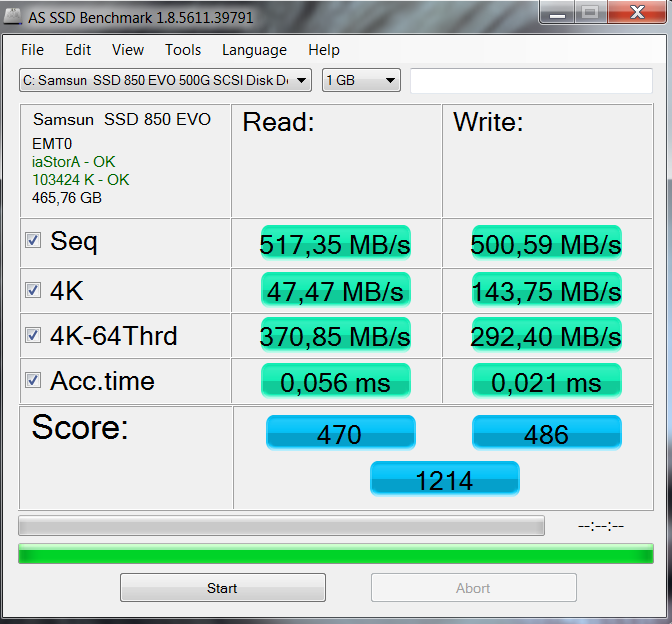 Для статистики старенький OCZ Vertex 3 Max Iops 120 гигов, подключение SATA3, деградация sandforce имеет место: запись(любая) не превышает 225, чтение 4K/1T вообще жалкие 16(или это - норма?). Вывод: Sandforce - фтопку!