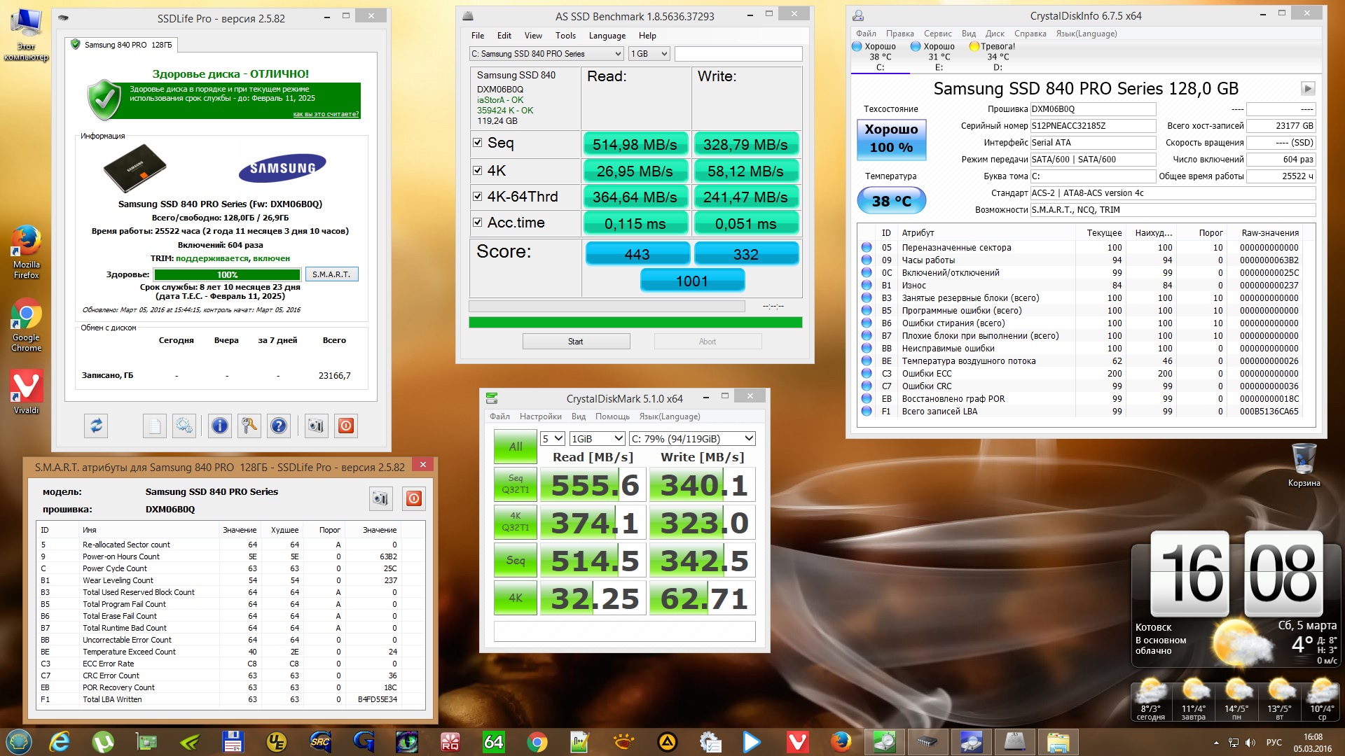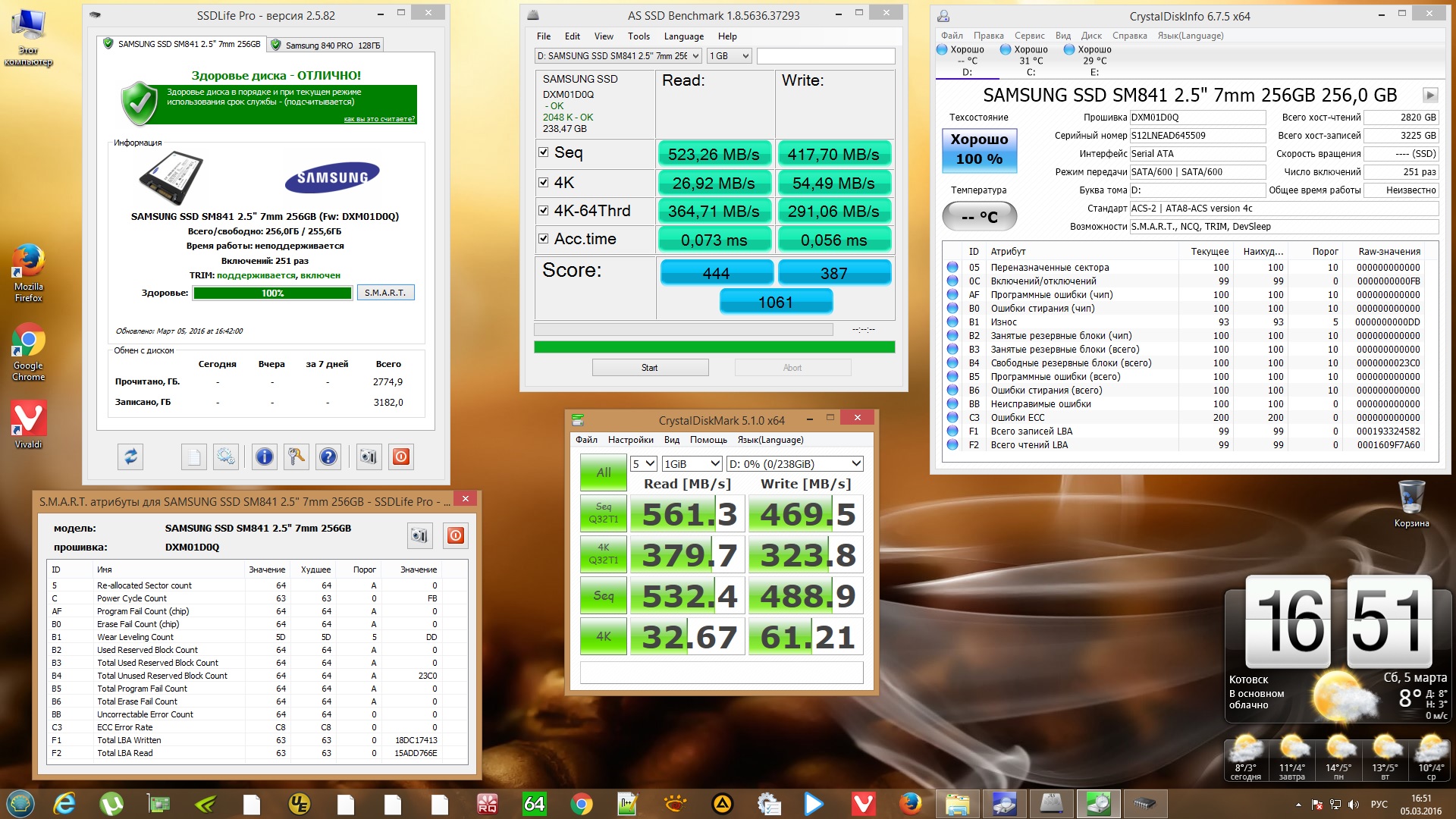 Взял на барахолке за недорого Samsung SSD SM841 256Gb, который, судя по обзору является OEM версией Samsung SSD 840 Pro для сборщиков с идентичной аппаратной начинкой.