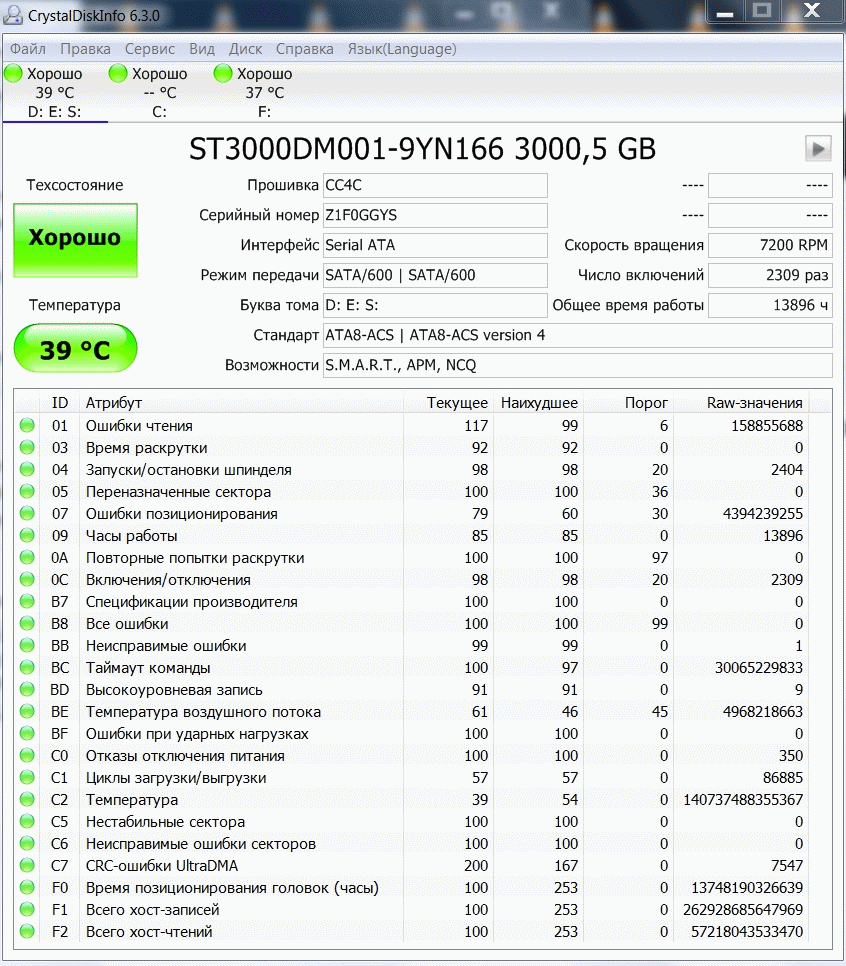 8. У моего винчестера Seagate в полях S.M.A.R.T. “Raw Read Error Rate”/“Seek Error Rate”/“Hardware ECC Recovered” совершенно дикие значения, в то время как у накопителей иных производителей там нули. Это нормально?