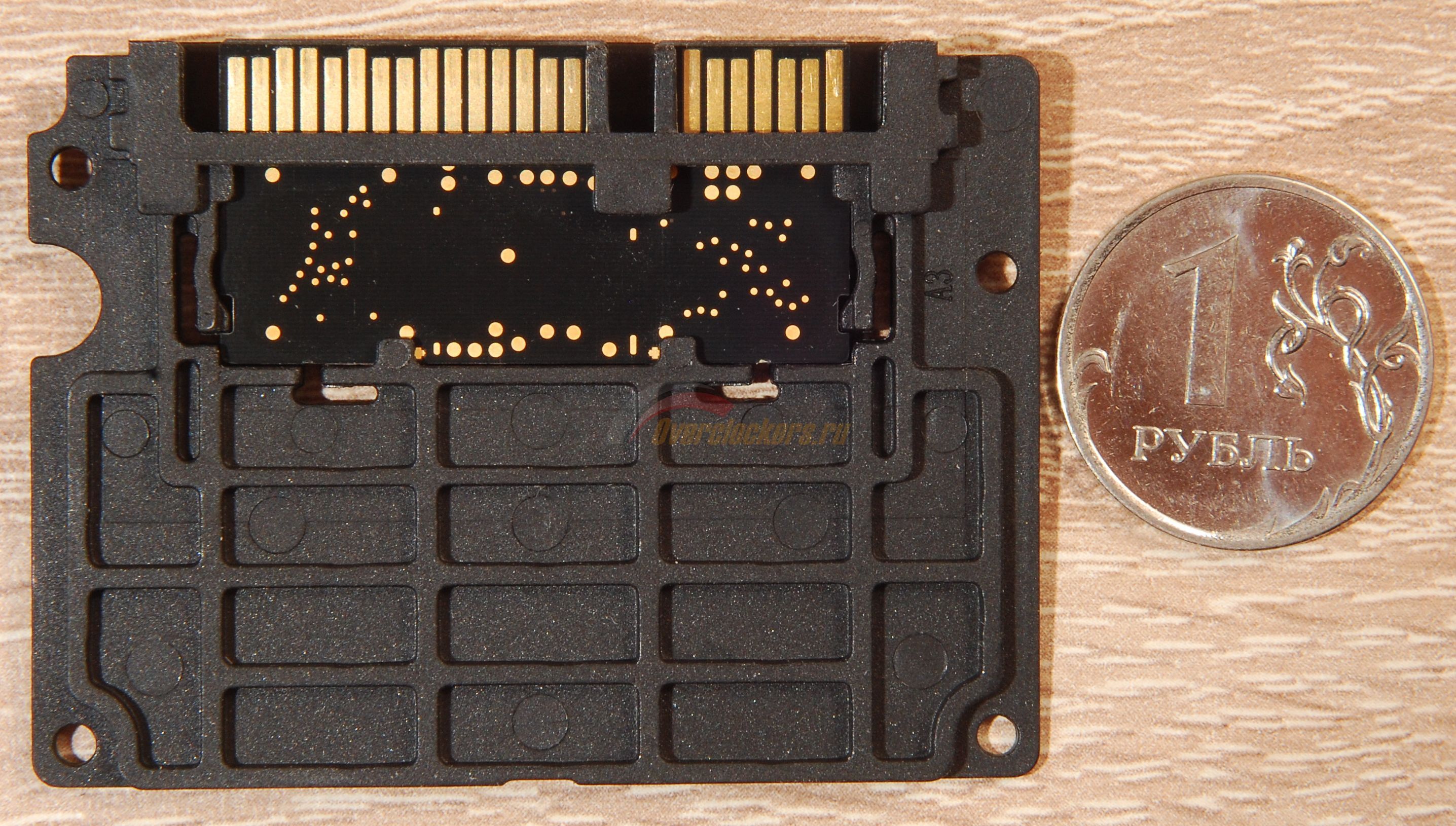 Единый корпус в пластиковом зажиме-фиксаторе (в дальнейшем и от него, наверное, избавятся и переделают сами корпуса накопителей). Никаких "зелёненьких платок" с отдельными микросхемами. Откломаете разъём - прощайтесь со всем накопителем, ибо подпаивать проводки будет практически не к чему.
