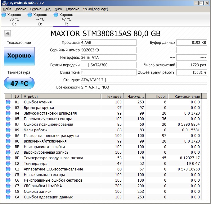8. У моего винчестера Seagate в полях S.M.A.R.T. “Raw Read Error Rate”/“Seek Error Rate”/“Hardware ECC Recovered” совершенно дикие значения, в то время как у накопителей иных производителей там нули. Это нормально?