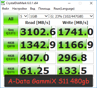 Crucial BX500 на 480гб, брал за 4200 руб, скорости похоже немного ниже из-за того что всунут в последние SATA порты на отдельном контроллере ASM1061. #77
