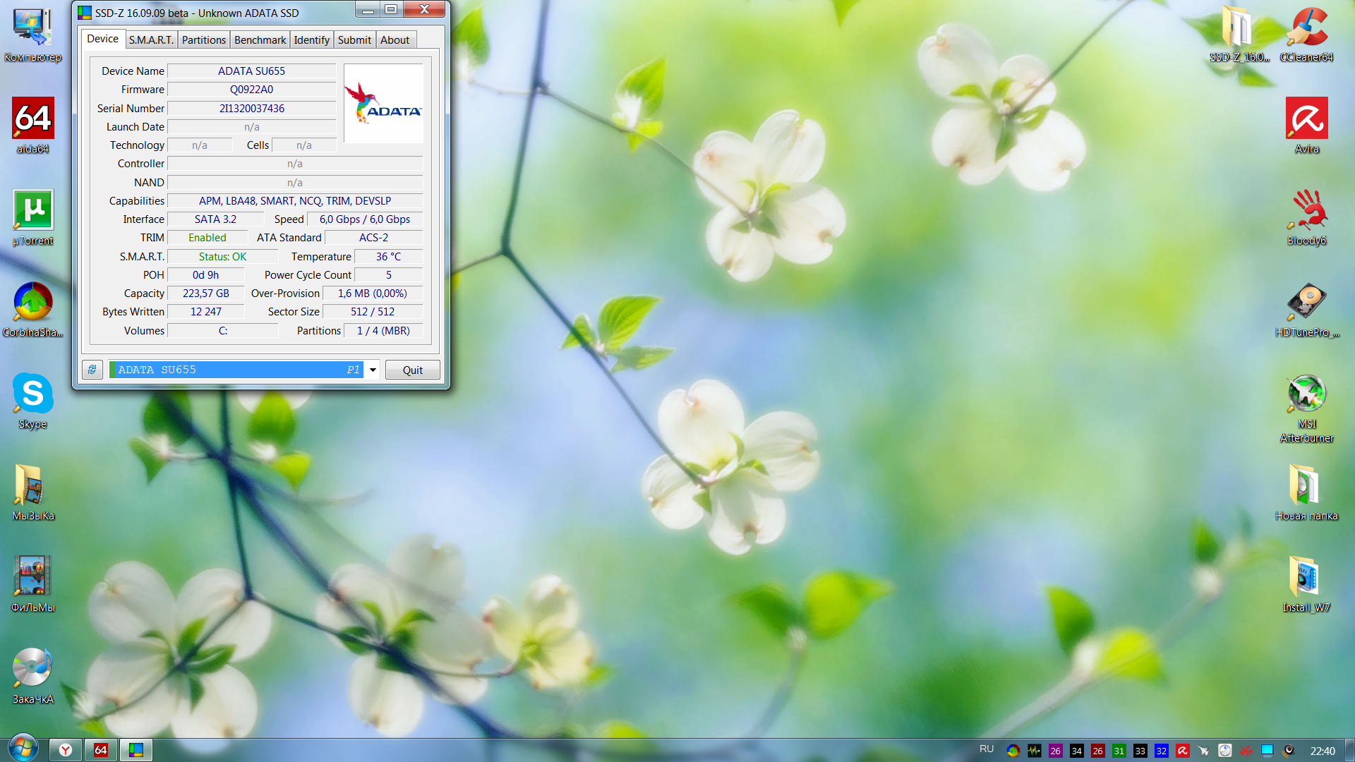 Народ всем привет купил тут я себе ссд A-DATA Ultimate SU655 ASU655SS-240GT-C 240Гб скачал прогу ssd-z версия пишет последния SSD-Z_16.09.09 вот и что она выдала я в тупике что за херня это ,где тип памяти и контролёр