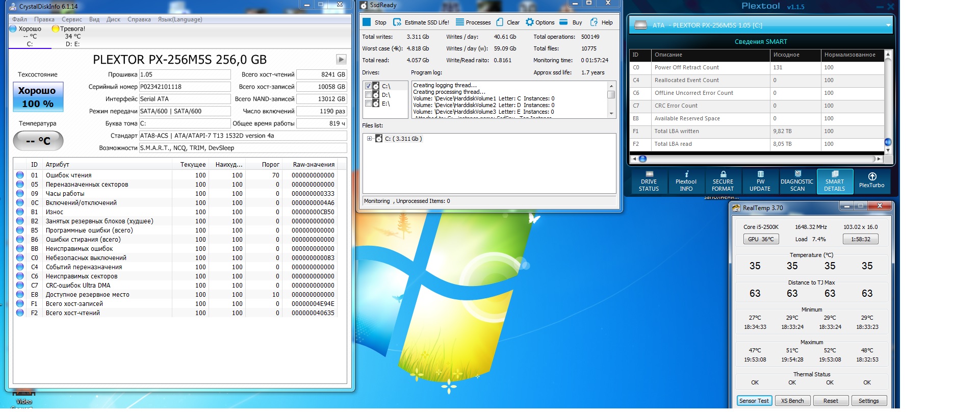 Куплен 02.11.13 наработка по часам и записям есть.... вот думаю нормально ли я укладываюсь в эти рамки если они реально такие! Есть люди которые на подобные ситуации отписываются, мол у них и торренты на SSD и игры и монтаж видео, а SSD ещё работать и работать. Пока писал это сообщение SSDReady предрек 2 года работы. В итоге есть ли реальный способ определить ресурс или отслеживать состояние? На моем SSD система, пара игр живущих на ней вечно WOT, WOWS и редко приходящие маловески на ознакомление.