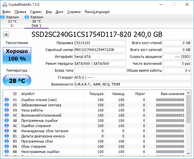 На улице +20, дома немногим больше. Комп был включен, температура SSD370 почти точно соответствует комнатной, температура PNY (который даже не использовался до момента запуска CDI) +28, что абсолютно нереально.