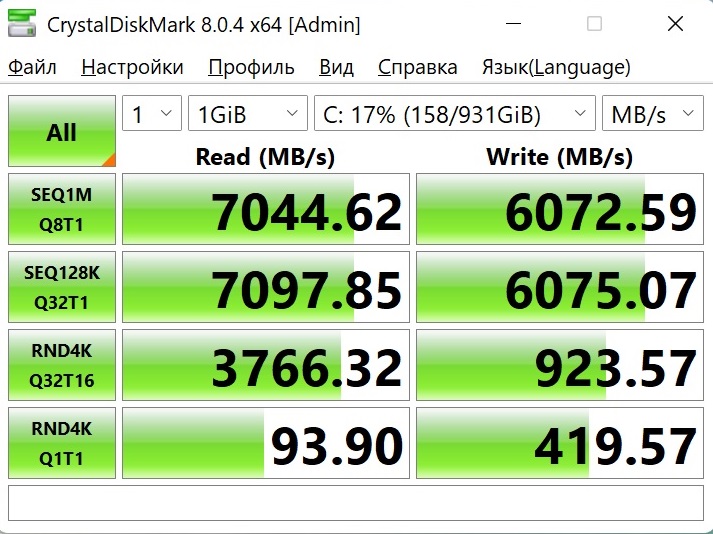 Никакого общения здесь быть не должно, только свой результат в одном из популярных бенчмарков. В очередь, конечно, CrystalDiskMark.