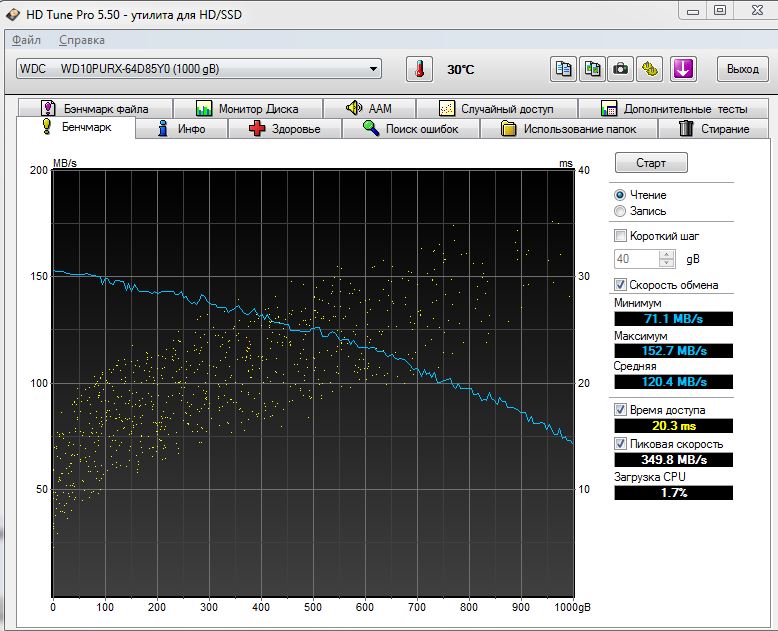Это наверно средний 50 мб/с на частично заполненном. Скорость у диска в самом начале максимальная, по середине медленней и в конце совсем медленно. Ну если вам хватит то ладно, главное чтоб не разочаровались покупкой как у некоторых бывает.