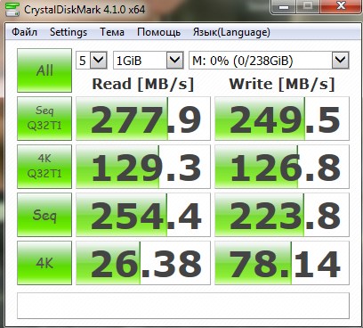 Итак, вот такими результатами закончилась моя эпопея с обновлением моей древней системы дешевейшей китайской SSDшкой за 53$ (такой). К ней заказывал адаптер PCI-e -> mSATA 3.0. Также тестировал и подключение к SATA2 и родному чипсету. Тесты на скринах. Но пока не пробовал с SATA3 адаптером выставлять SSD как загрузочный.