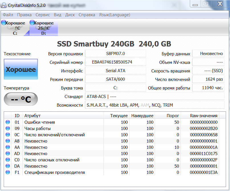 ========================================= Перед публикацией скриншотов Crystal Disk Info в меню "Сервис" >> "Дополнительно" >> "Raw-значения" выберите вариант "10 [DEC]". Это упростит восприятие информации. В меню "Сервис" ставьте галочку "Скрыть серийный номер".
