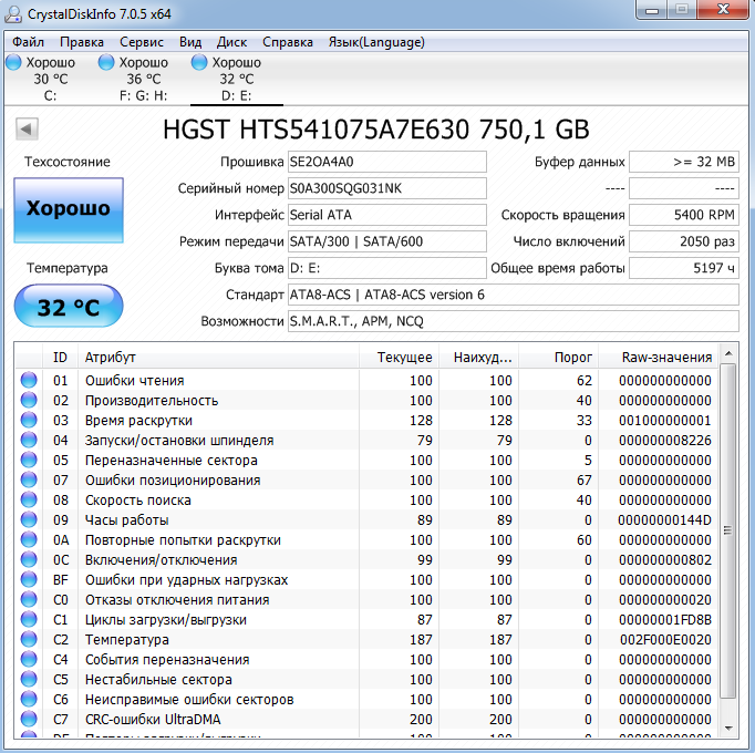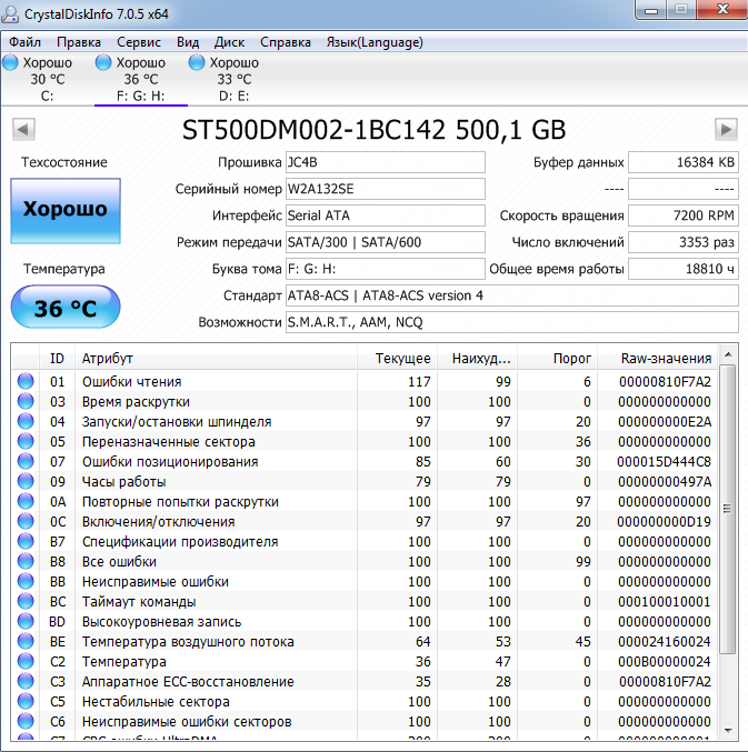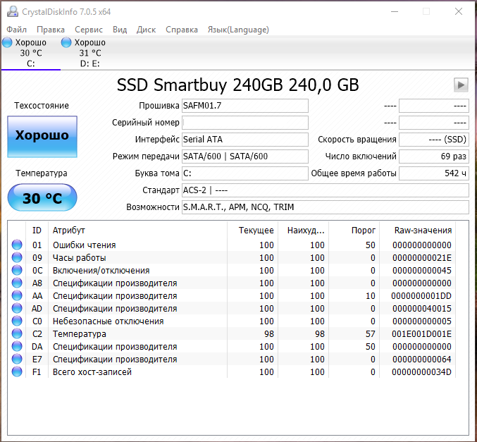 ========================================= Перед публикацией скриншотов Crystal Disk Info в меню "Сервис" >> "Дополнительно" >> "Raw-значения" выберите вариант "10 [DEC]". Это упростит восприятие информации. В меню "Сервис" ставьте галочку "Скрыть серийный номер".