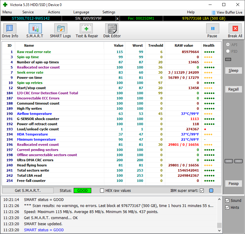 Для начала по неписаным правилам хорошего тона ) полагается прогнать SeaTool. Там есть короткий тест. Это формальность. И большая вероятность что ничего особенного не покажет.