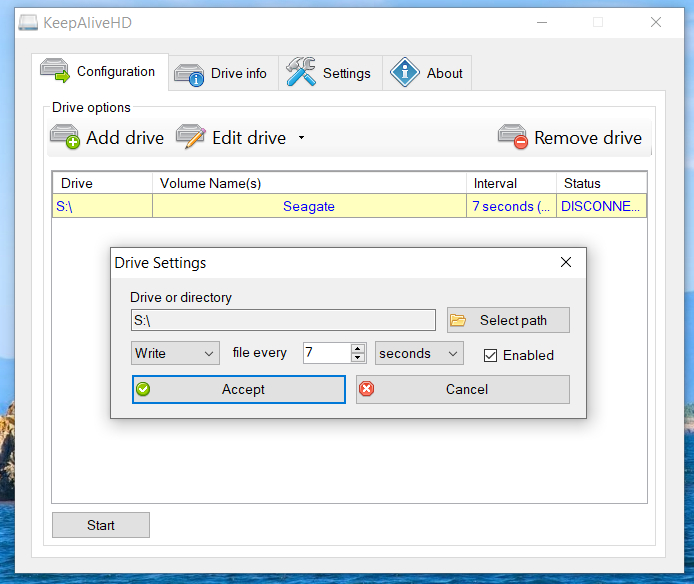 в BIOS понятно, "запланированная" парковка в прошивке HDD, для того и нужен KeepAliveHD - не даст умолкнуть, настраиваете на Write (запись), пишет лог фалл в несколько KB через указанное время, 7 сек. предлагает по умолчанию, можете указать 5 сек, или вообще 3 сек. "если вас постоянно за ухо теребить - уснете"?