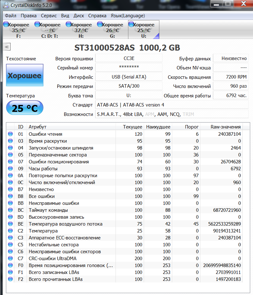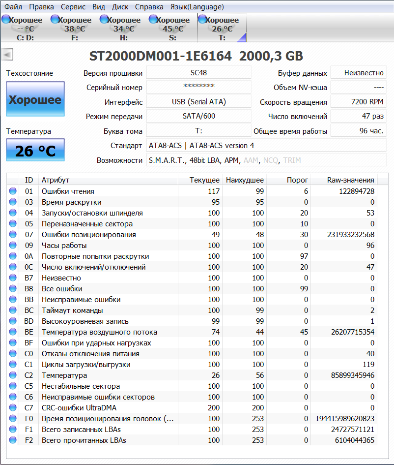 Sania., активно в S.M.A.R.T на всех внешних, скорость так сильно не проседает ни на одном из них в любом режиме, хоть с BitLocker, хоть на 99% забитый. Я делаю скрины S.M.A.R.T по всем дискам, везде есть NCQ, пока что ST2000DM001-1E6164 единственный диск без NCQ, хоть как подключай.