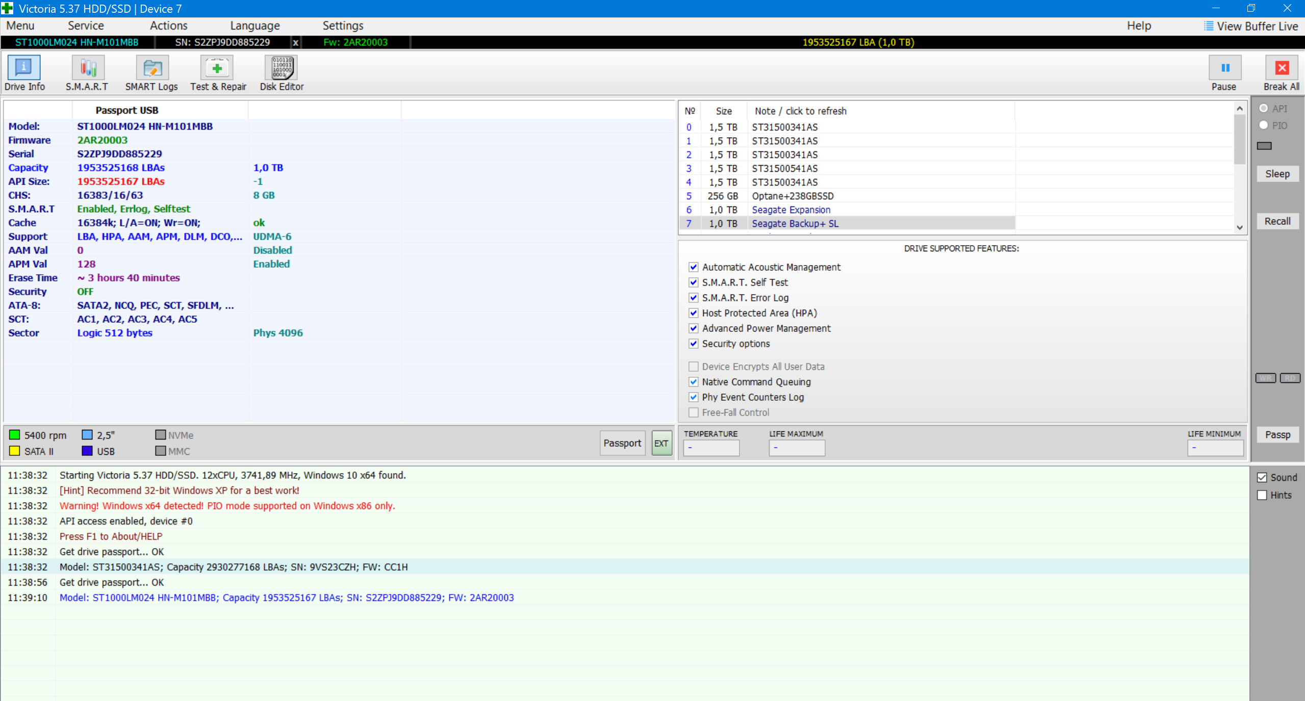 CHRONOS2160 достаточно CrystalDiskInfo. сложнее Victoria HDD, просто без s.ma.r.t никто не скажет хана диску, или еще может пожить.(?) хотя скорее проблема в электронной части. или разъем micro-B USB "расшатало", контакт теряется.