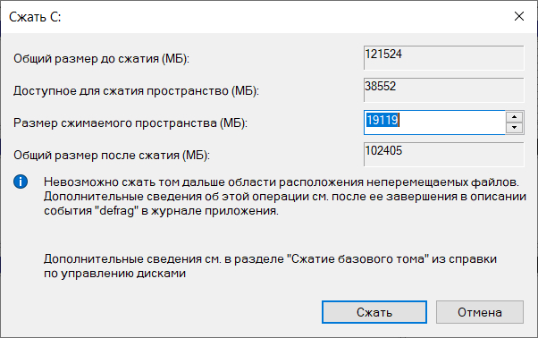 Добавлено спустя 48 минут 53 секунды: REALpredatoR сделайте неразмеченную область. конечно потраченный ресурс это не вернет, но хотя-бы не позволит в будущем заполнять весь объем. у вашего M5Pro такой нехилый B1 как раз из-за того что часто был заполнен под завязку. сожмите том С: чтобы общий размер после сжатия (Mb) остался 102 405.