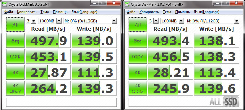 Посмотрите,это нормально для ssd crucial m500 120G, вчера купил и установил и смотрю с тестовыми образцами не сходятся данные . Смущает третья строчка тестов "4К",разница большая,с чем это связанно и это плохо или хорошо? Заранее спасибо!