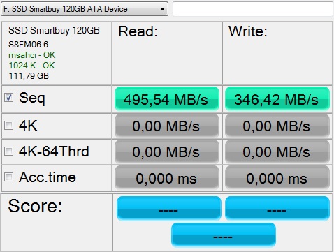 свежий_вел Вы по поводу ошибки у накопителей 120GB снижающей скорость на новых прошивках? Нужно полный тест AS SSD провести. По линейным скоростям все нормально.
