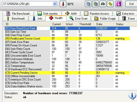 Ivan_Aleksandrovich Прогоните скан в виктории...я почему то склонен не верить в данные смарта по вашему винчу (сейчас он демонстрирует предел в показаниях мониторинга...больше отображаться просто не может, похоже на глюк)...по результатам скана сказать будет проще. А жалобы на HDD вообще есть? Теряет файлы, чекдиск при запуске, слетает ФС?