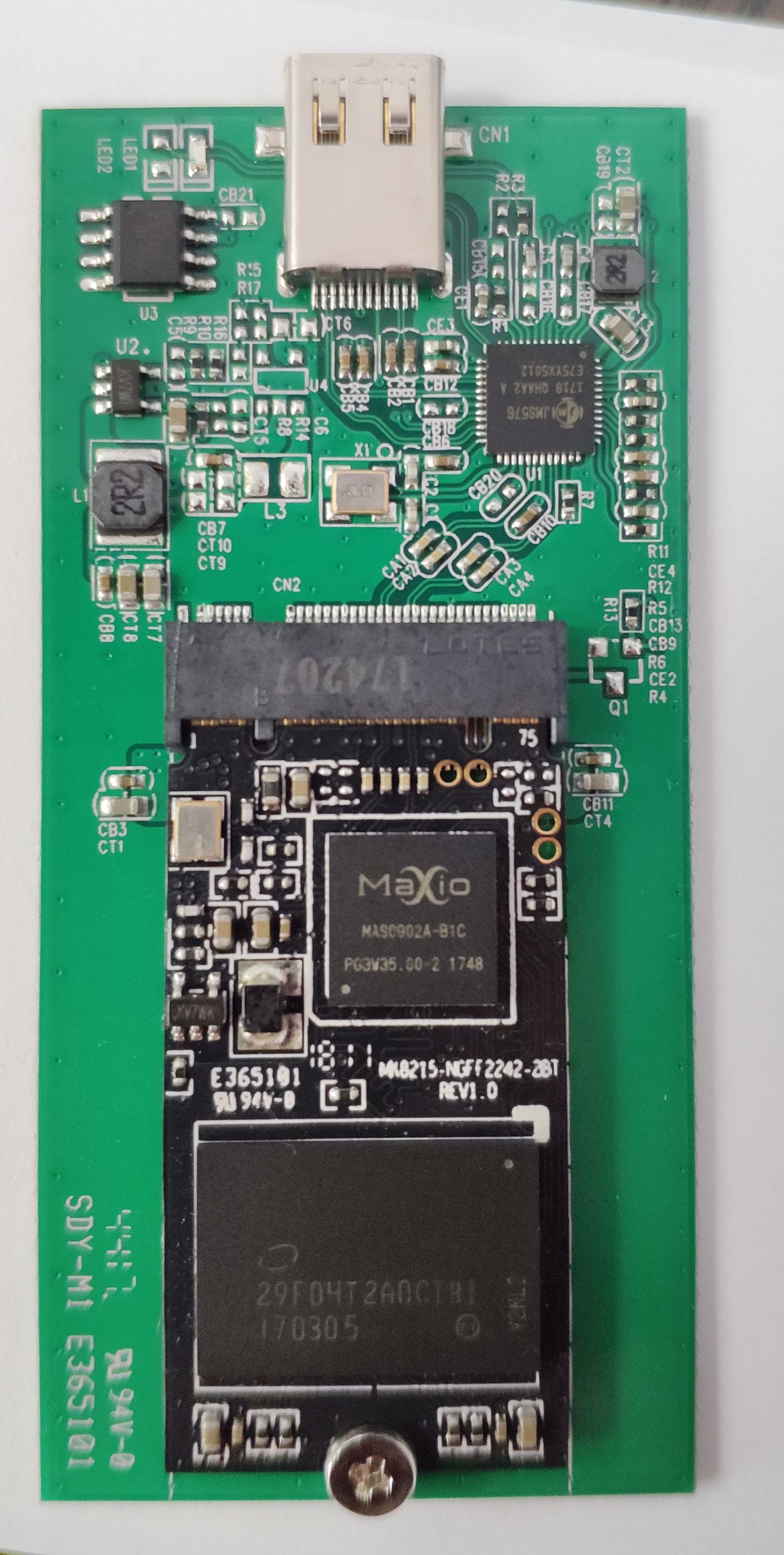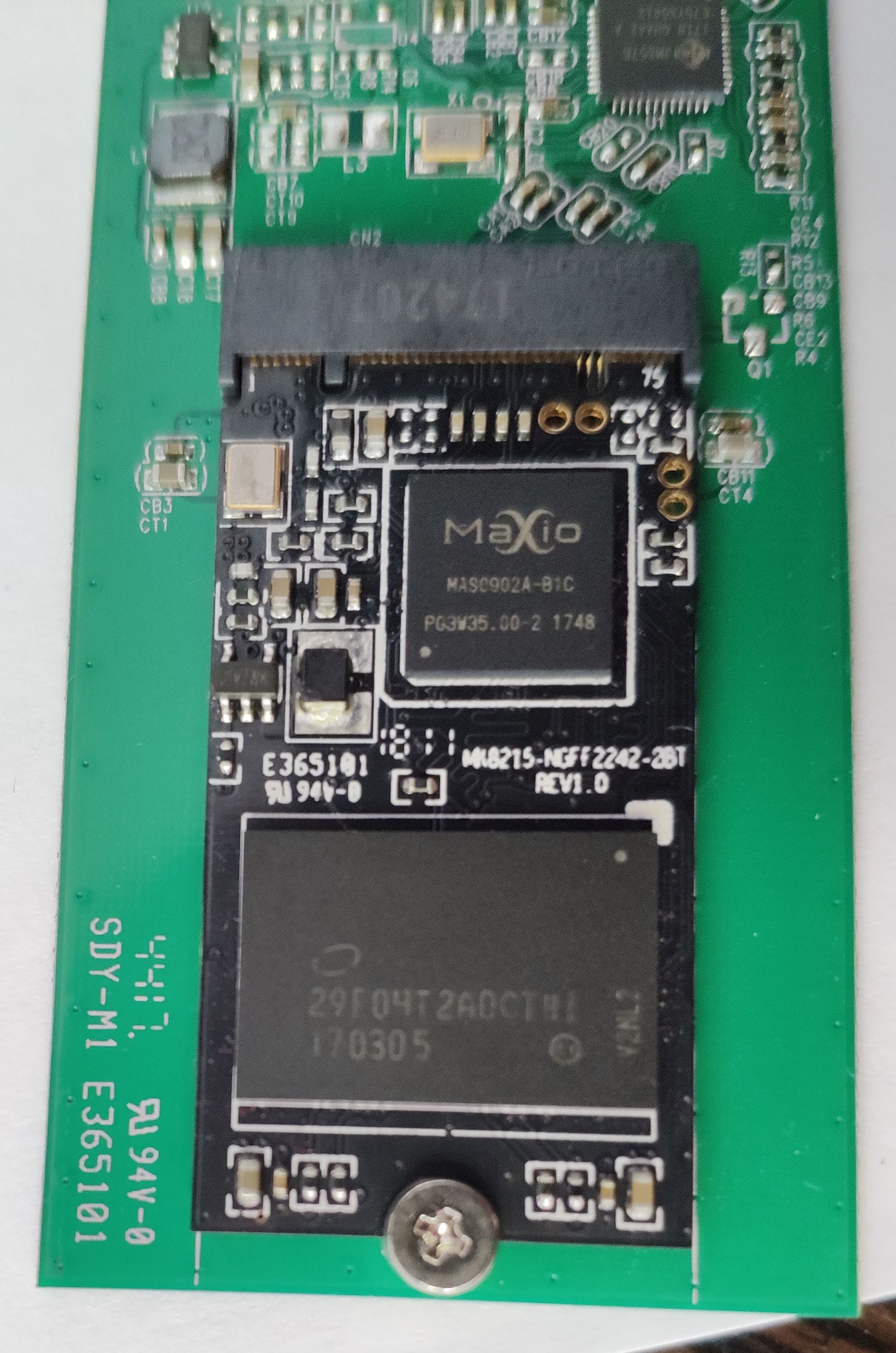не сильно то и замазан, скорее какая то метка при сборке Контроллер Maxio Technology (Maxiotek) MAS0902A-BxC и память интел. KingSpec сейчас кажется везде такой контроллер и память интел ставит. У меня на KingSpec z3 512mb (внешний диск, внутри SSD M.2) тоже контроллер MAXIO MAS0902A-BiC и память интел 29F04T2A0CTH1