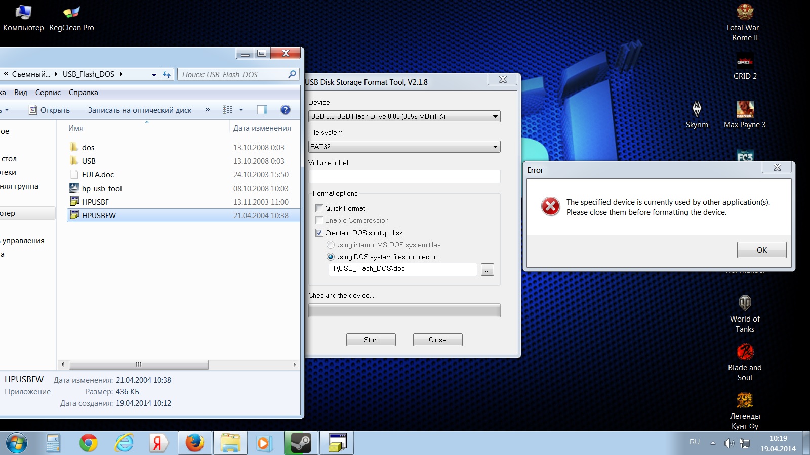 Pavlentiy70 запустил программу - нажал прошить - все я тебя не понимаю зачем тебе от НР утилита по форматированию флешек? Вот готовая прошивалка из под виндов(она внизу по ссылке что тебе выше дали), при этом данные не трогаются, ей тут все прошивались http://www.overclockers.ru/download?219 ... .9_Win.exe