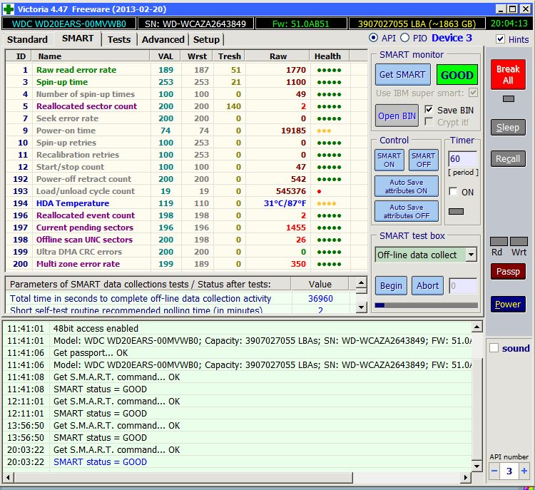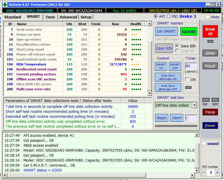 Господа прошу совета! Толи лыжи не едут, толи я ... Виктория и CrystalDiskInfo показывают постоянно увеличивающееся количество ошибок, а родная утилита от WD говорит, что все в порядке, но тест не проходит!
