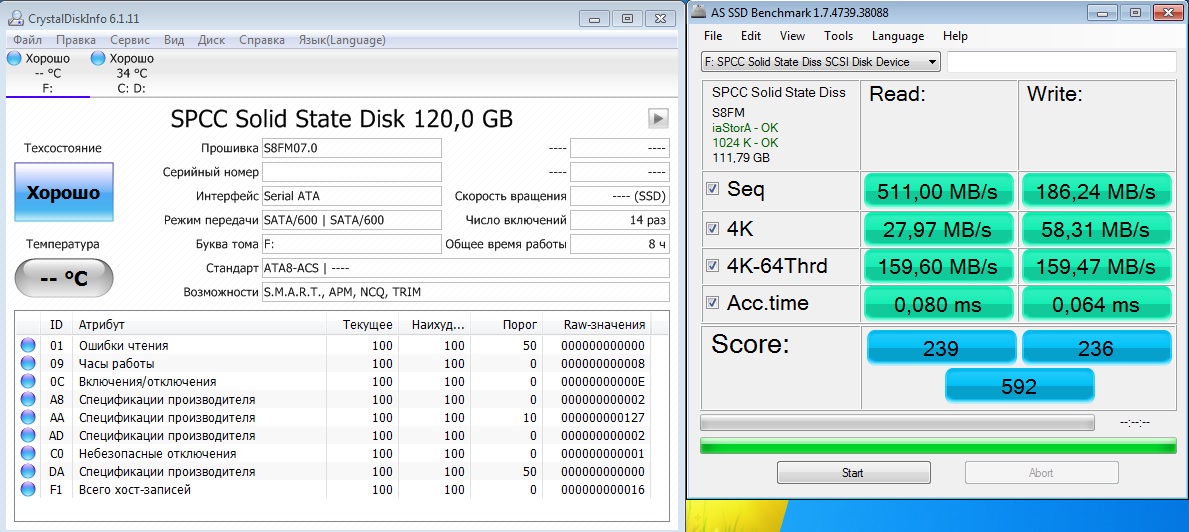 С оговоркой эксплуатации на штатном драйвере msahci (драйвер Intel [он же iaStorA, IRST] на контроллер SATA не ставить): - SmartBuy Ignition 2, GoodRAM C50/100, PQI S522, Corsair Force LS 240 Гбайт**, Patriot Blaze 240 Гбайт*** и прочие Phison-based (контроллер Phison; за полным списком лучше заглянуть в FAQ); Проблема заключается в падении скоростных характеристик на операциях записи. По отзывам, встречается при прошивке версии 7.7. Исправляется обновлением прошивки до версии 7.9 (после чего может потребоваться выполнение Secure Erase).
