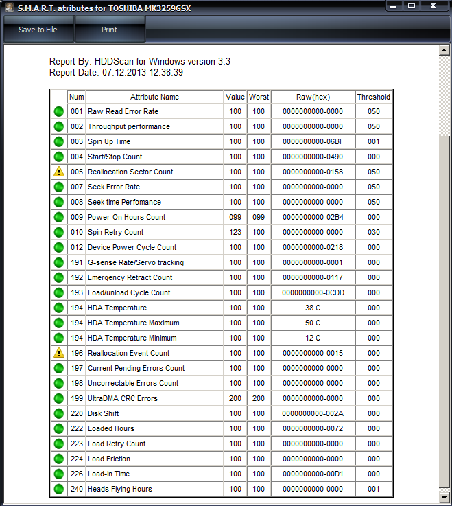 атрибуты 05/C4/C5/C6/C7/C8 ...но многое и от конкретной модели винча зависит... Есть в шапке и в первом посте информация на эту тему...или можете его сюда выложить (скрин смарт). Вообще смарт имеет общий статус для исправного накопителя - good (в hdtune - ОК)