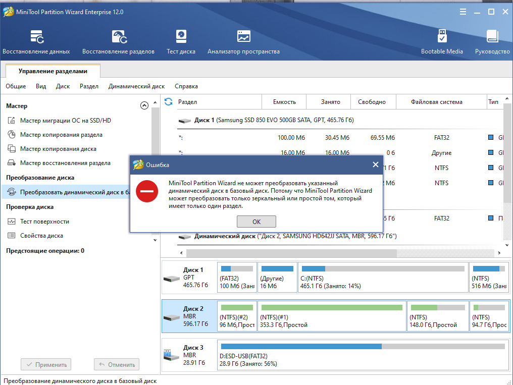 Пробовал преобразовать через MiniTool, но не получилось.