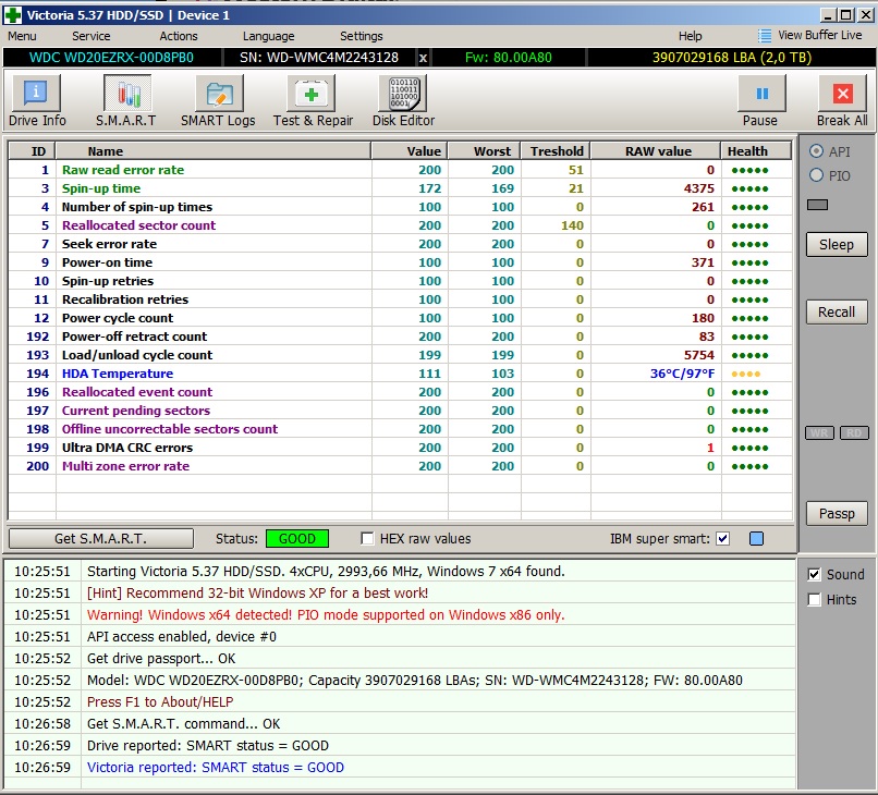Народ! Есть вопрос. Моему WD HDD диску на 2 Tb - 1 год. Не системный, для хранения файлов и прочего. Месяц назад он у меня просто перестал функционировать. Стал в системе RAW. Прочитал кучу статей, кучу видео пересмотрел. Ничего не помогает. Форматироваться диск не хочет ни какими прогами. Инициализироваться не хочет никак. Но в управлении дисками, а так же в программах Acronis Disk Director, и Crystaldisk указано, что диск исправен. Подключаю его к компьютеру через USD бокс 220 V. И после его подключения проходит несколько минут прежде чем он появится в управлении дисками, а так же - в Acronis Disk Director, или в Crystaldisk. Никакие команды Diskpart не помогают. CHKDSK тоже бесполезно использовать. Букву диску присвоить нельзя, так как он не инициализирован. Но мне кажется диск рабочий. А вот что с ним случилось и как это исправить я уже не знаю. Готов потерять с него все файлы, но толку то. Ничего не помогает, ни форматирование ни чего. Причем во всех случаях мне пишется мол - Не удалось завершить. Ошибка ввода\вывода.