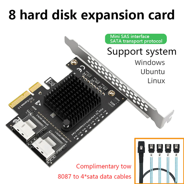 Камрады, Понадобилось увеличить место на самосборном хранилище, треба подключить 4-5 дисков по 8+Тб. Приглядел плату расширения Плата расширения ZhenLoong 8 портов SATA 3,0 коннектор контроллера к адаптеру PCI-E X4 6G 6 Гбит/с на алике. Удобна тем, что нет кучи Sata разъемов, а используются комби. Но проблема в том, что нет ни отзывов ничего - по факту покупать кота в мешке не охото. МОжет кто использует похожие платы, где можно точно сказать, что вот эта 100% будет держать винты объемом 8Тб и выше. Все что находится в описании или комментах пишут, что 2-4Тб максимум держат. Поделитесь проверенной моделькой, кому не жалко.