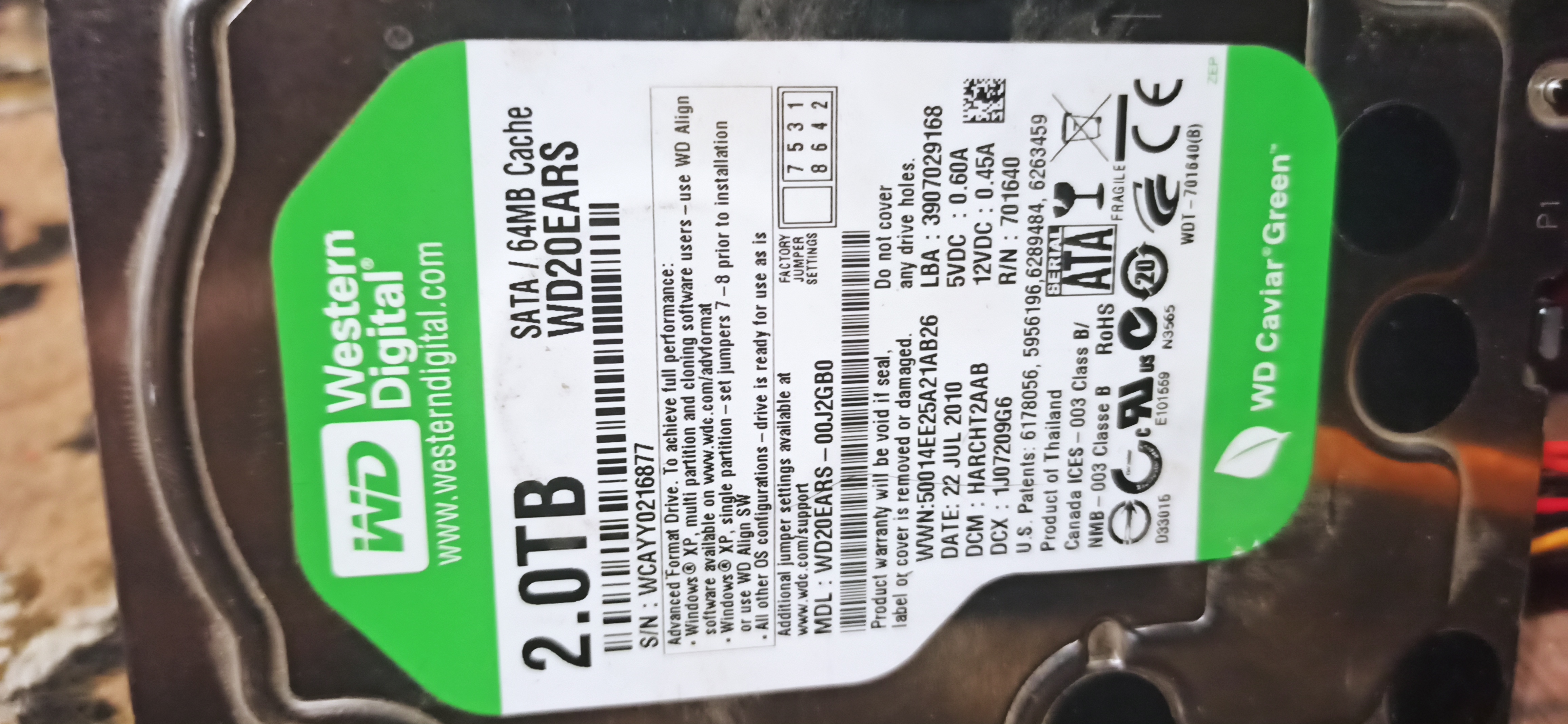Был куплен винт 2Гб WD20EARS-00J2GB0, куплен на руках. Фото во вложении.