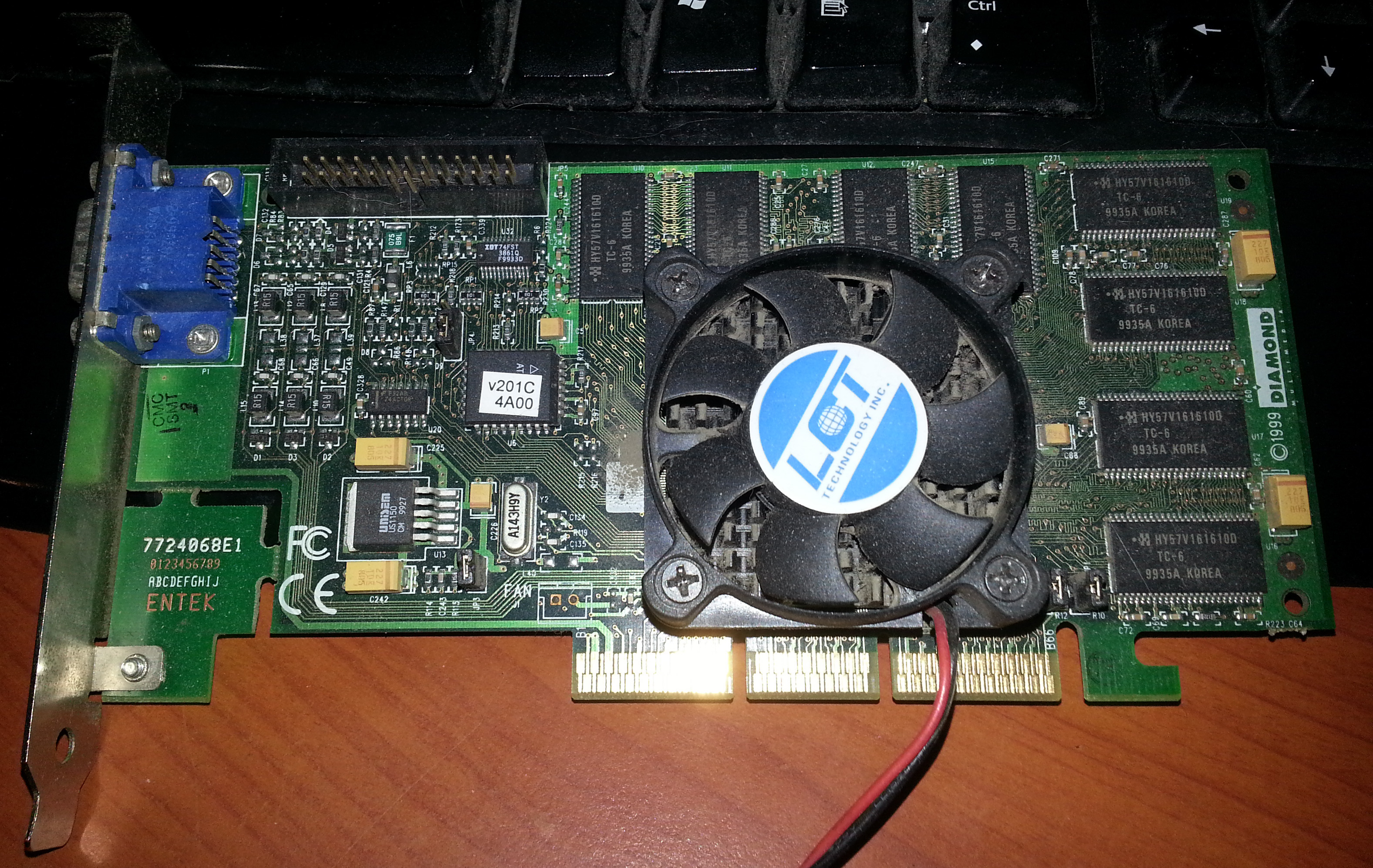 Это же Diamond Viper 770 - отличная видеокарта в свое время, прямой конкурент Voodoo3 3000, без поддержки API Glide, но с поддержкой "32-битного" цвета. Когда вышли GeForce 256\2\2MX, она, конечно, перестала быть топовой, но все равно еще пару лет "тянула" игры.