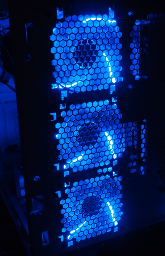 Конечно вдохновленный увиденным начал работы по Mozart TX. Больше всего захотелось создать образ этакого секретного сервера с big data измеряемые в десятки Тб, 3 SSD, 3 компьютера в 1 корпусе. Дополняет все 2 суперкулера, Cooler Master Turbine и идеальный кабель менеджмент вентиляторов.