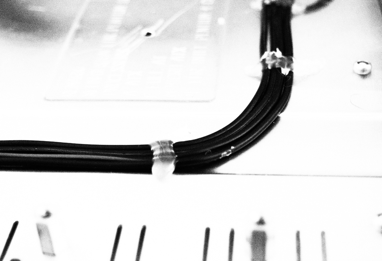 Самая топовая укладка проводов на сегодня представляет собой специальный канал в оргстекле и сверху прижаты оргстеклом. Небольшое фото как начало серии экспериментов с креплением проводов оргстеклом.
