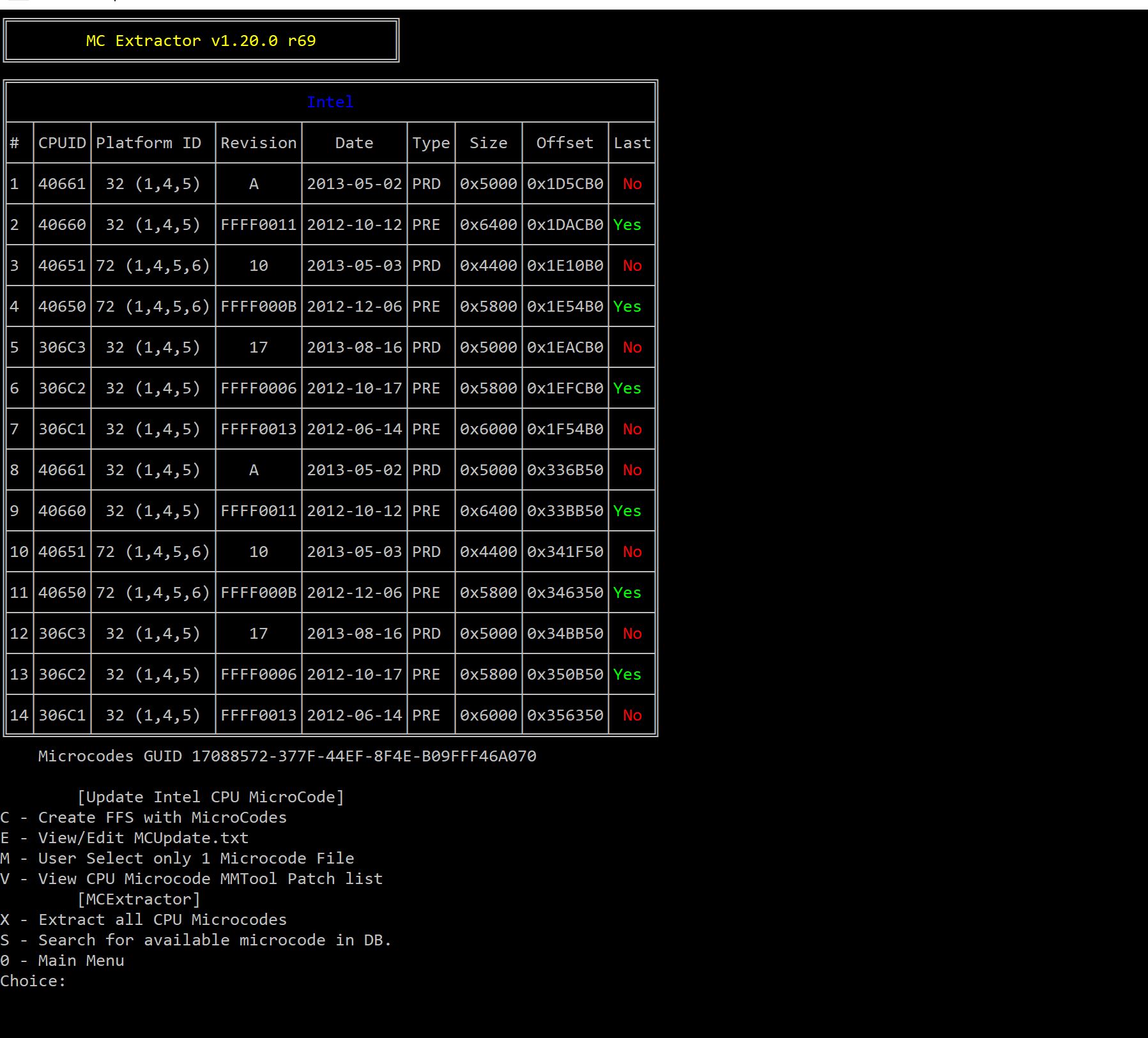 1) В послденее время опять участились жалобы на наличии вируса в пакете UBU, якобы МСЕ,ехе содержит вирус. Поэтому принято решение, что вместо ехе файла теперь будет py исхотдный Пайтона. Чтобы была корректная работа с микодами вам необходимо установить пакет Ptyhon версии 3.7 или выше. А также две библиотеки: - colorama - PLTable Как это сделать уаказано на ГитХабе в репе МСЕ. Вы можете юзать м ехе файл, но скачивать его будете самостоятельно. Если установите Пайтон то у вас появится возможность юзать другие приложения на Пайтон, которых очень много. 2) Все архивы с файлами теперь здесь https://mega.nz/#F!MSRDxSqR!5etS-te7ZqRQX9Zb25es_A 3) На данный момент рекомендуется использовать UEFITool v0.25.0 (и не выше), до выяснения