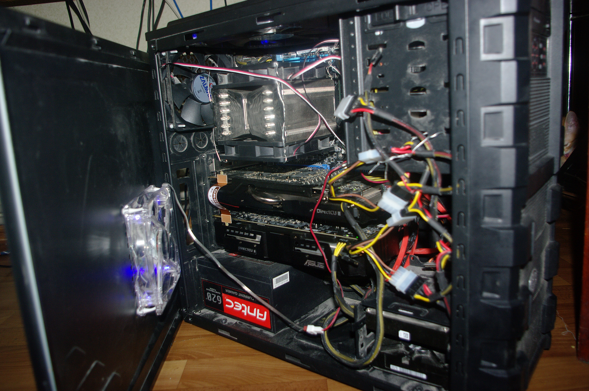 1. для начала включаем мозг и видим 2 переходника с 4 молексов на PCI_E 6 pin. из-за стенки они не дотягиваются 2. ути господи будешь говорить своим деткам, а пока сам подрасти 3. я НЕ спрашивал, что мне улучшить в корпусе. я показал железо, чтобы присмотреться к НОВОМУ корпусу