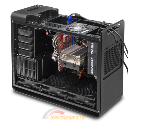 Компоновка этого корпуса близка к идеалу, она идеальна для систем с несколькими видеокартами, вентиляторы не мешают естественной конвекции, за счёт избыточного давления пыль не лезет в корпус через все щели, как в корпусах с негитавным давлением. Блок питания никуда не убегает, при транспортировке скорее оторвёт башню кулера процесора, чем блок питания. Для лучшего понимания ниже картинка.