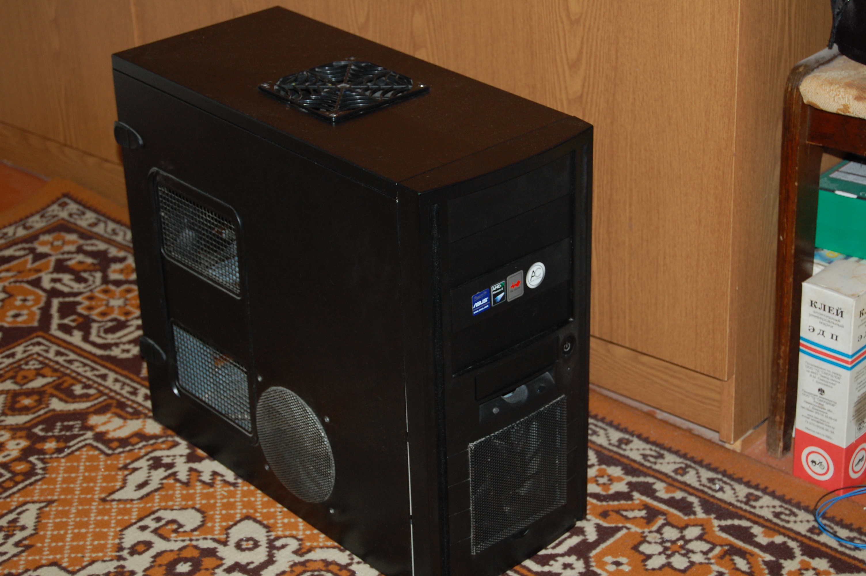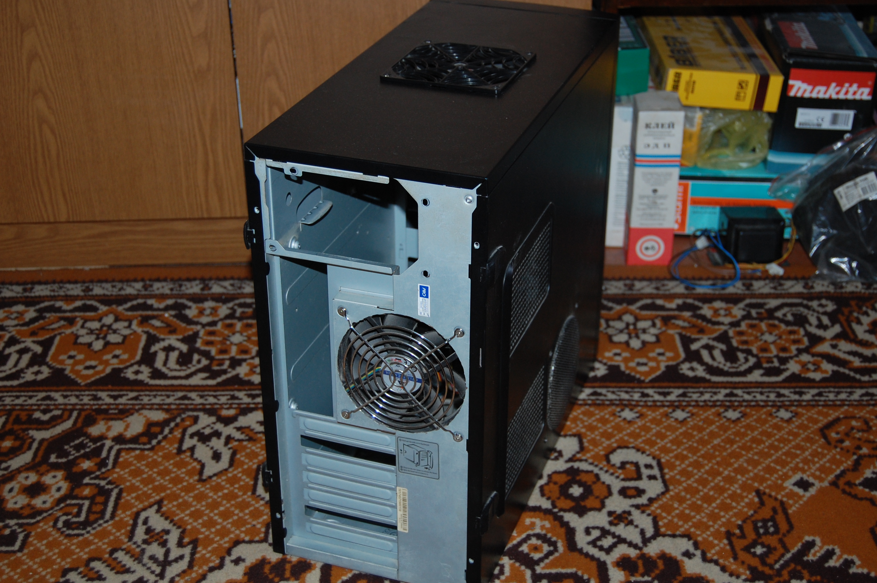 Комментирую пост. Мой старенький Inwin-J523 midi. Тянул даже GTX-570. Но! Ведь не каждый сможет прорезать верхнюю вытяжку+сбоку. Сзади выштамповка вырезана стоит стандартная решётка (Дремель однако). Спереди тоже вырезано поставлена сетка. Все 4 вертушки 120мм+по умолчанию б/п тянет. Выкладываю заодно фото и до переделки.