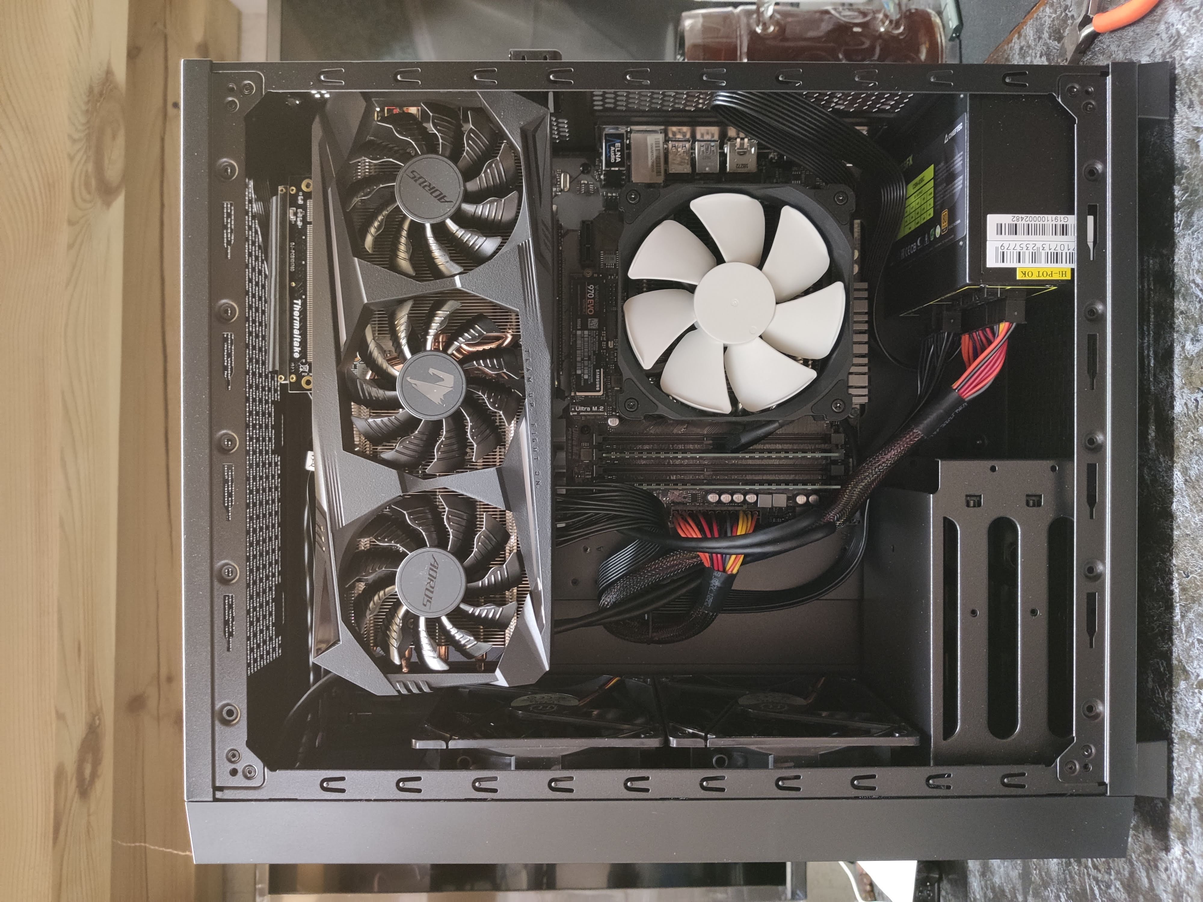 Evil_Side Думал обману?) пылевик-сеточку с боковой стенки (над акрилом) сними заодно - карте полегче будет. Да и верхний пылевик тоже можешь попробовать убрать. Я ещё райзер посоветовал бы заменить на тот что «углом», тогда сверху можно 2х120 на выдув поставить и даже 2080ти в этом корпусе может жить.