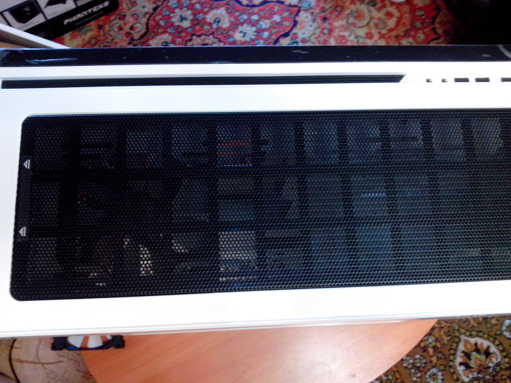 Верхняя решётка. Снимается нажатием на стрелочки, также как пылевые фильтры. Под решёткой место для установки радиатора вплоть до 480мм либо 420мм. Я туда установлю XSPC AX480 White.