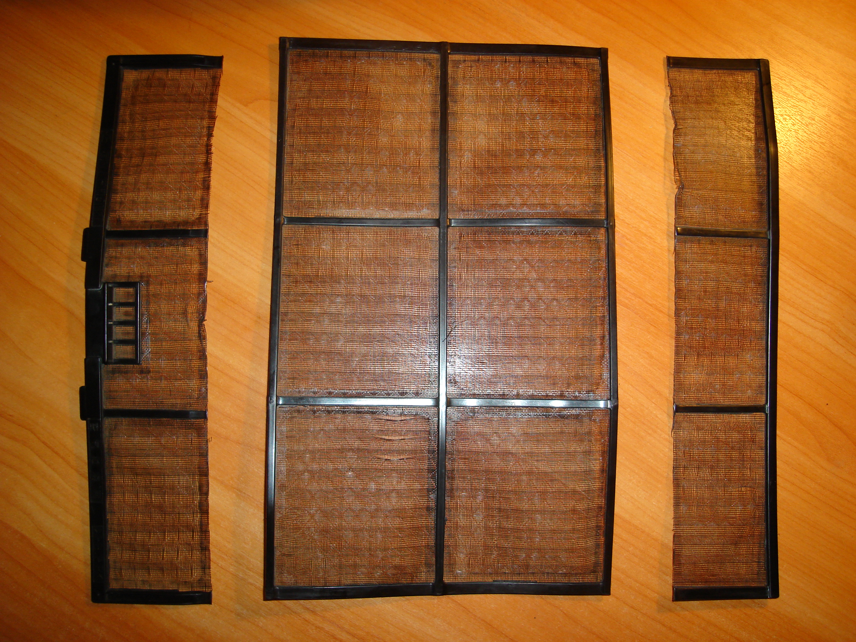 Пластик фильтра довольно мягкий, поэтому его надо каким то способом его выравнить и прикрепить, чтобы он плотно прилегал к панели.