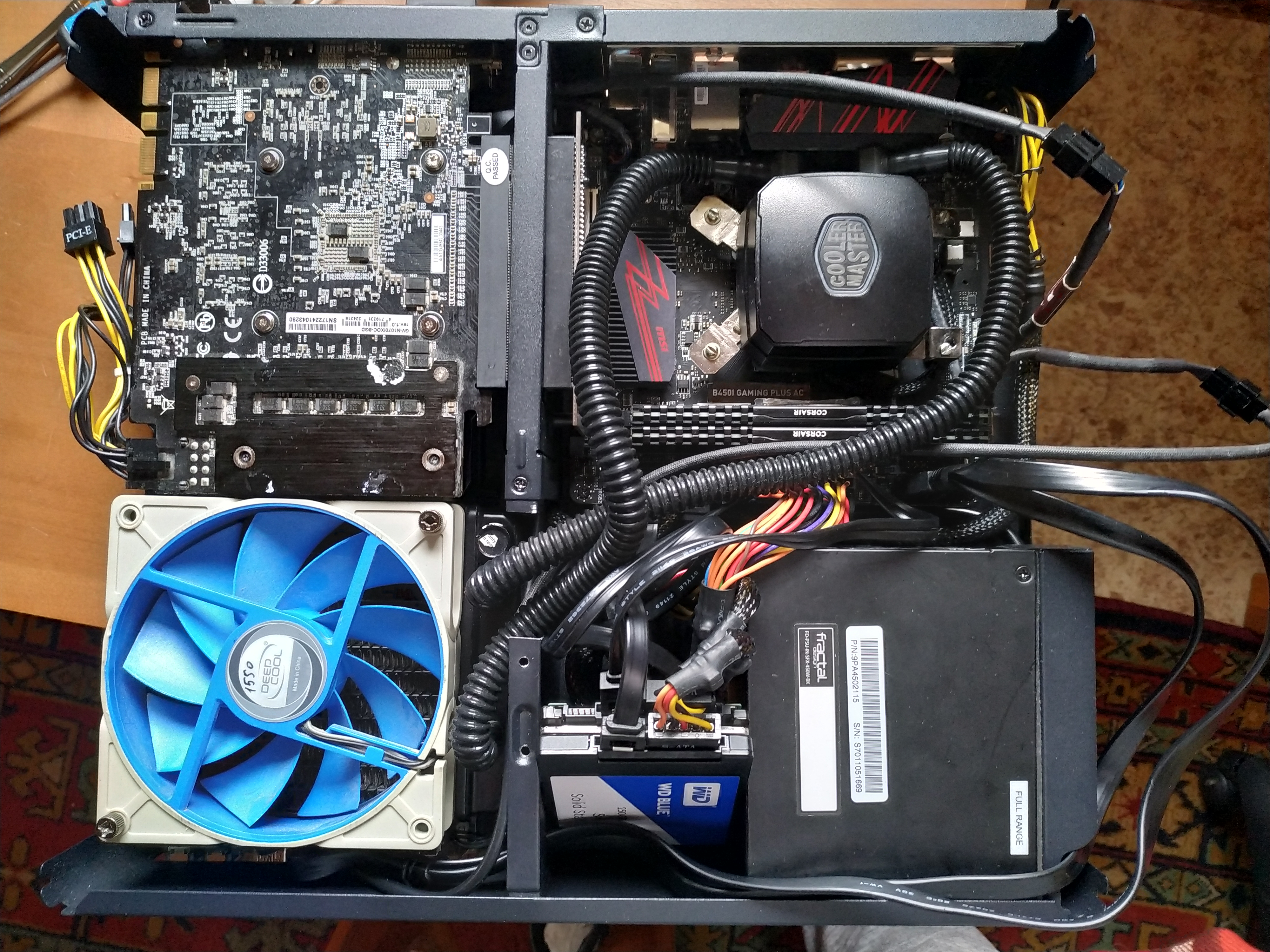 idhas Да он дешевле, но за него хотят 6000р, а выглядит он максимум на 3000р совсем не интересно, у DENG хоть видно за что деньги платишь, толстый фрезерованный алюминий. Есть F15 и еще. Можно установить один вентилятор сверху, и пару внизу, но я пока изучаю, лежит железо, а корпуса нет, Ncase M1 не успел купить.