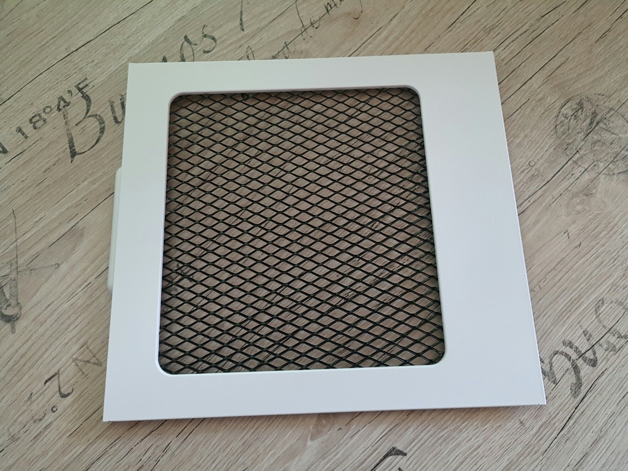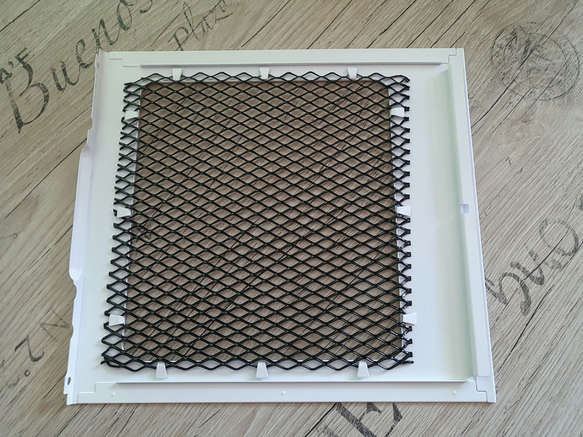 Была, только ее проблематично было бы сажать на эти "ушки", они шириной 7 мм, пришлось бы их подпиливать, чего не хотелось. Поэтому взял специально сетку с ячейкой 16x6, в местах крепления пришлось совсем немного ячейки расширить. Если что, уже думал, закажу на алике пылевой фильтр, вырежу под размер окна и положу сверху.