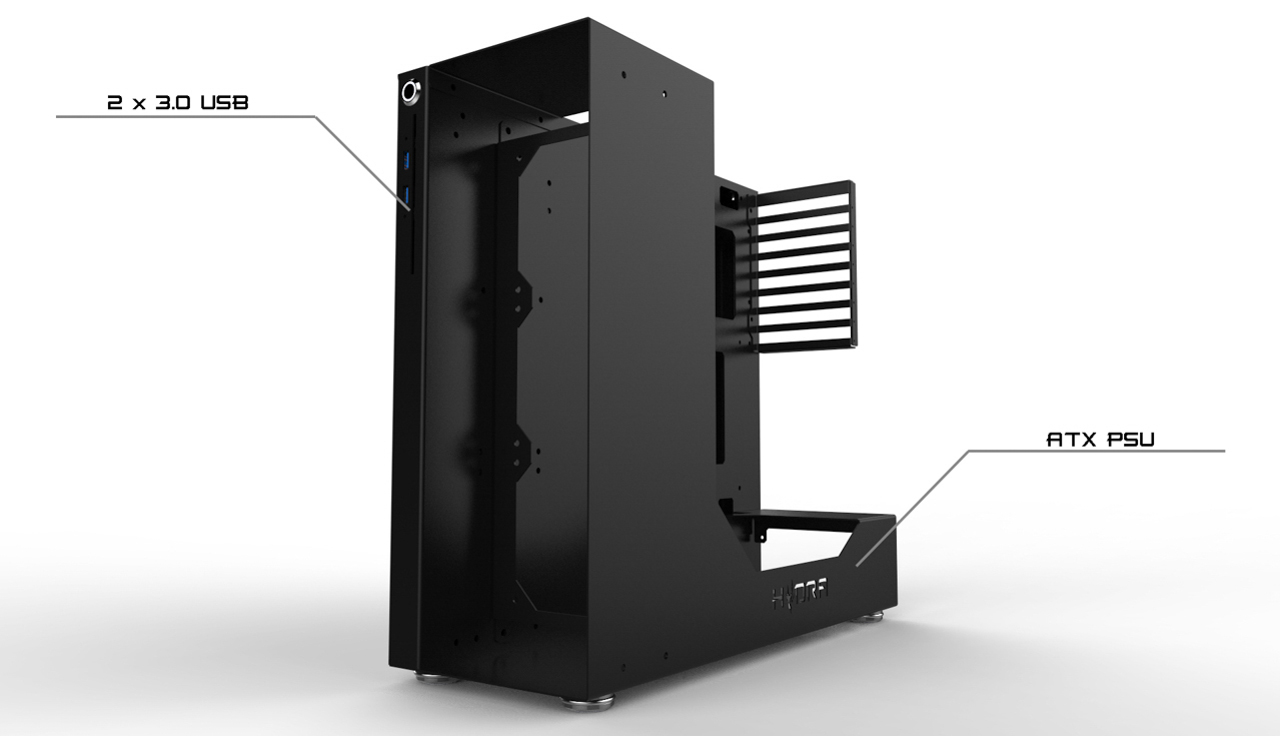 Тепло отводится от корпуса через массивные алюминиевые радиаторы. При этом система способна эффективно отводить тепло даже в случае одновременной экстремальной нагрузки на обе видеокарты и процессор.