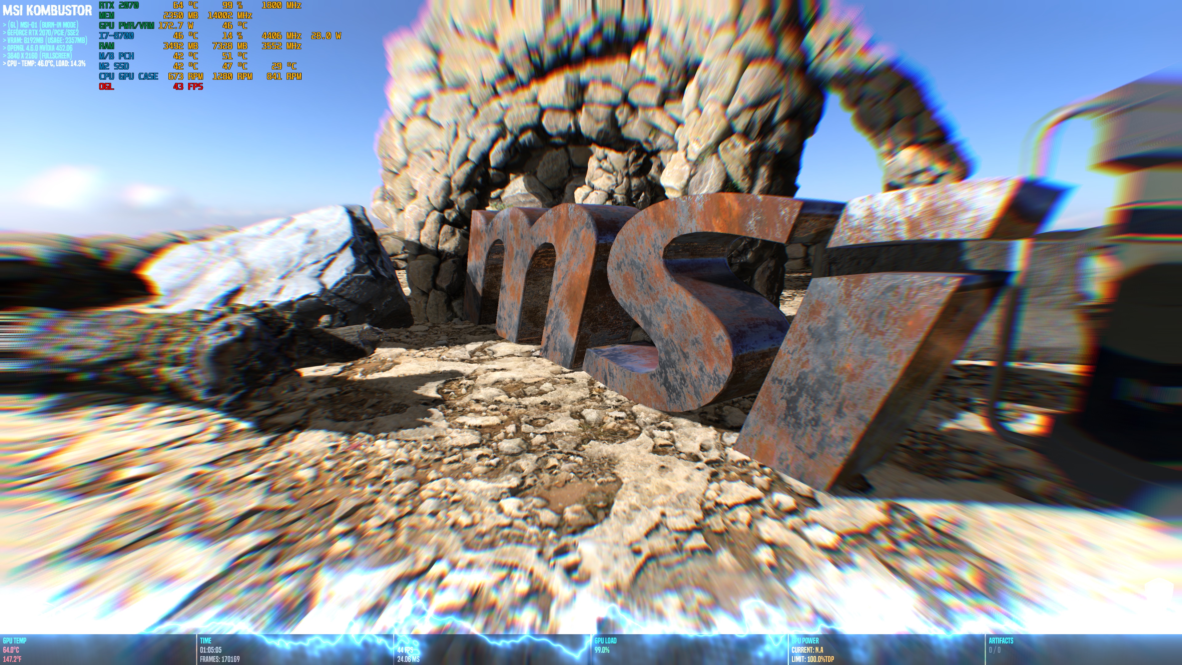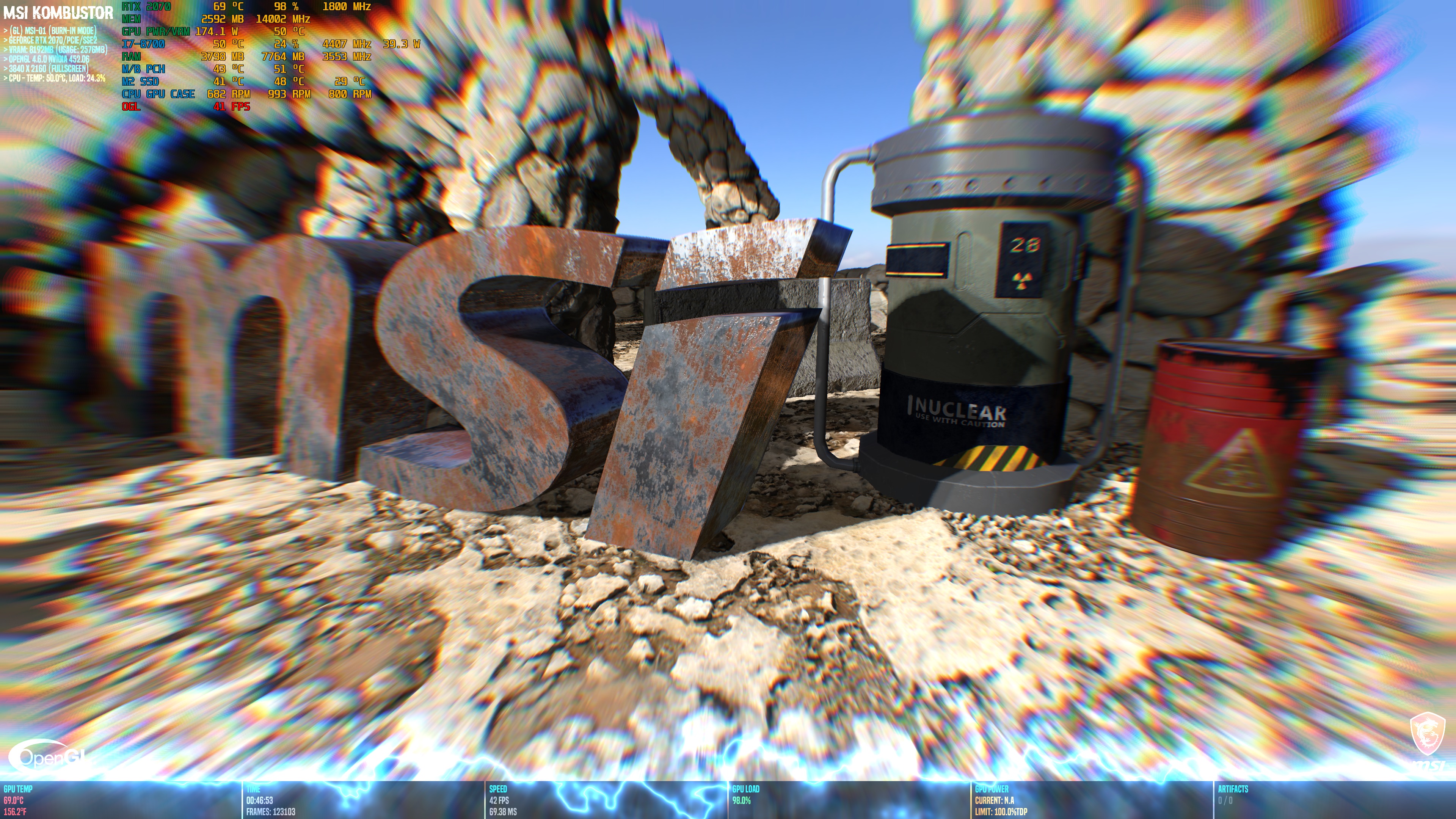 Тест 4К в Комбустере на 1ч40мин. Все датчики вывел в Афтербёрнере. При оборотах 1000 вообще мертвецкая тишина. При 1250-1280 еле слышимый поток воздуха. При скриншоте почему то сильно проседает ФПС.