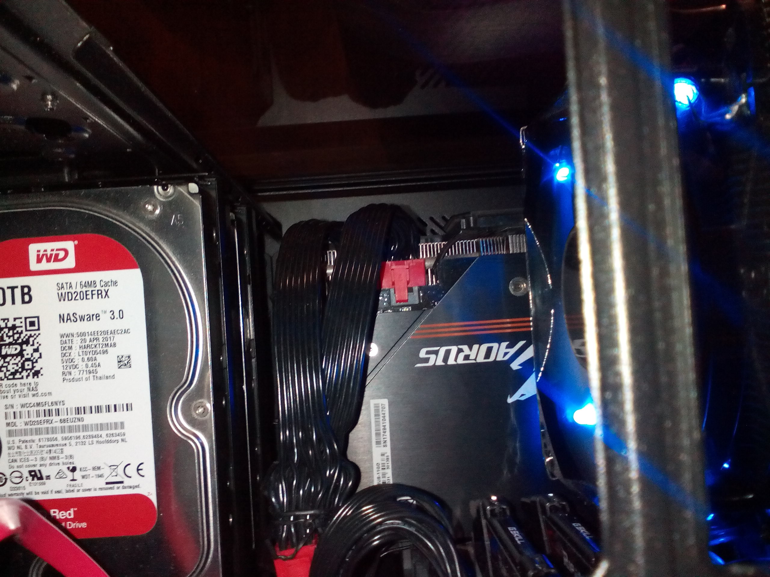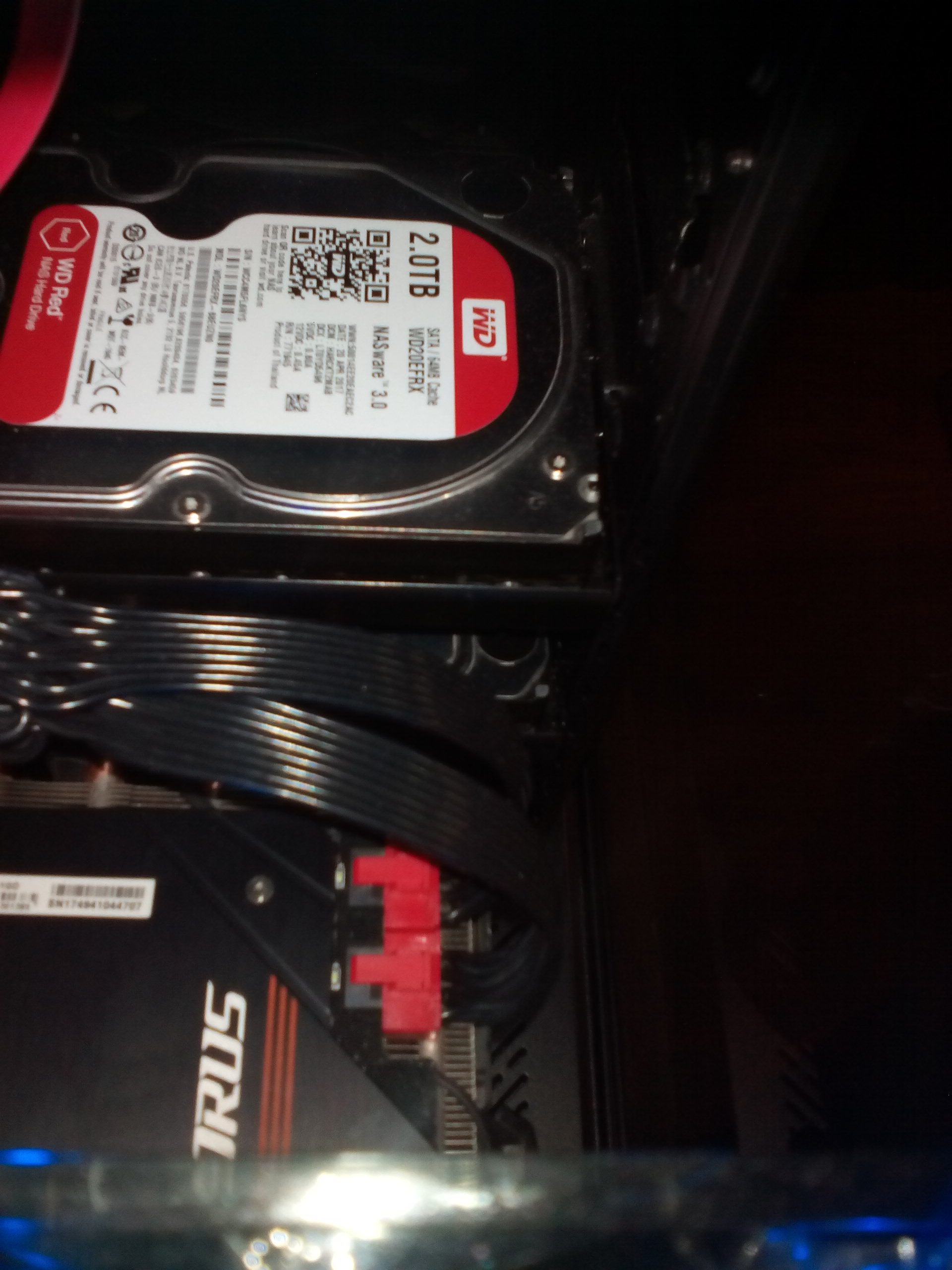 Lupus5 не вижу никаких проблем: я стенку в R6 не переносил, т.к. не вижу в этом действии практического смысла - продуваемость не изменится никак, а моя карта, которая занимает практически 3 слота и длиной 29,3 см, вполне поместилась бы без переноса стенки, если бы была и большей длины, т.к. между передним краем карты и задним краем этой стенки где-то 2-3 см (ширина карты - 142 мм). Касаемо жестких дисков - если стенку не переносить, то штук 4 вполне поместятся даже с 3-х слотовой видеокартой. Можно прикрутить карту вертикально - тогда, правда, HDD меньше поместится. Я хотел даже свои два HDD повесить вертикально без переноса стенки, но у меня установлен DVD, а без его снятия два никак не уместить. Вот - не сильно понятно сходу, но все, что я описал, видно (снимал через снятую верхнюю крышку):