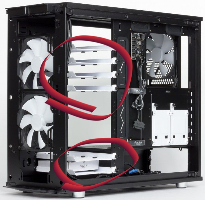 Дополнительный воздухозабор, который осуществляется через специальные окна, расположенные в нижней и боковых частях некоторых корпусов, позволяет увеличить поступление холодного воздуха для систем охлаждения видеокарт и процессоров.