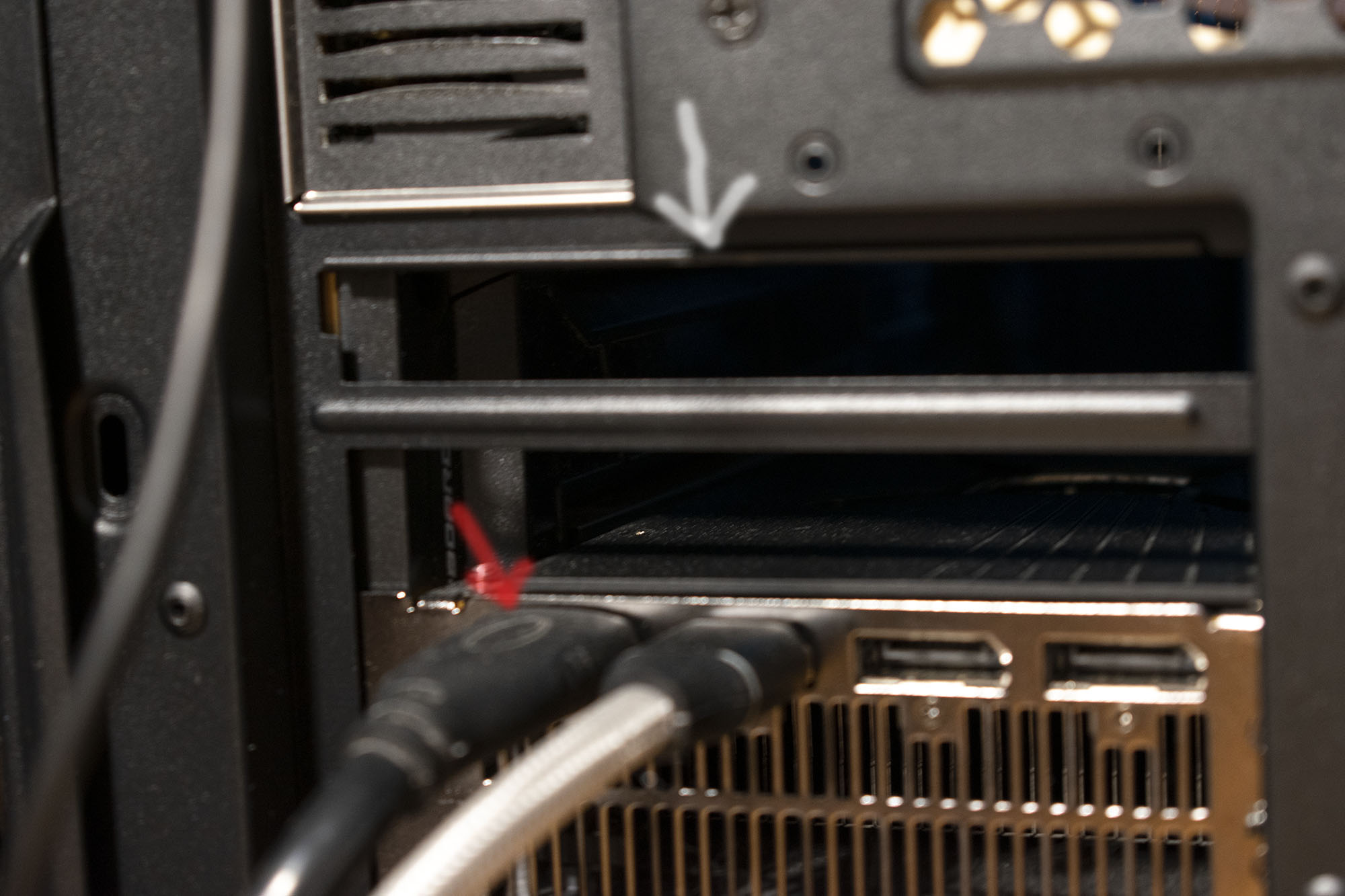 не входят полностью разъемы видеокабелей, мешает планка. Пришлось переставить во второй слот и получить 8 линий вместо 16. Напильником что-ли придется. Пипец, в люксовом корпусе.