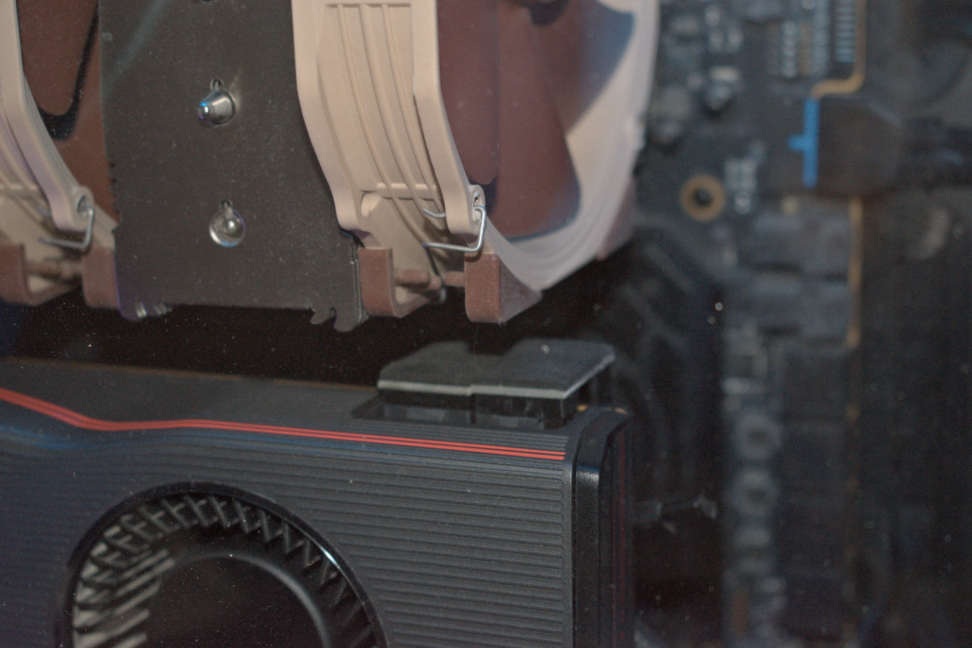 Кому интересно по вертикальному расположению видеокарты: пришли повороты для питания, провода мешали глубже карту поставить, упирались в радиатор кулера.