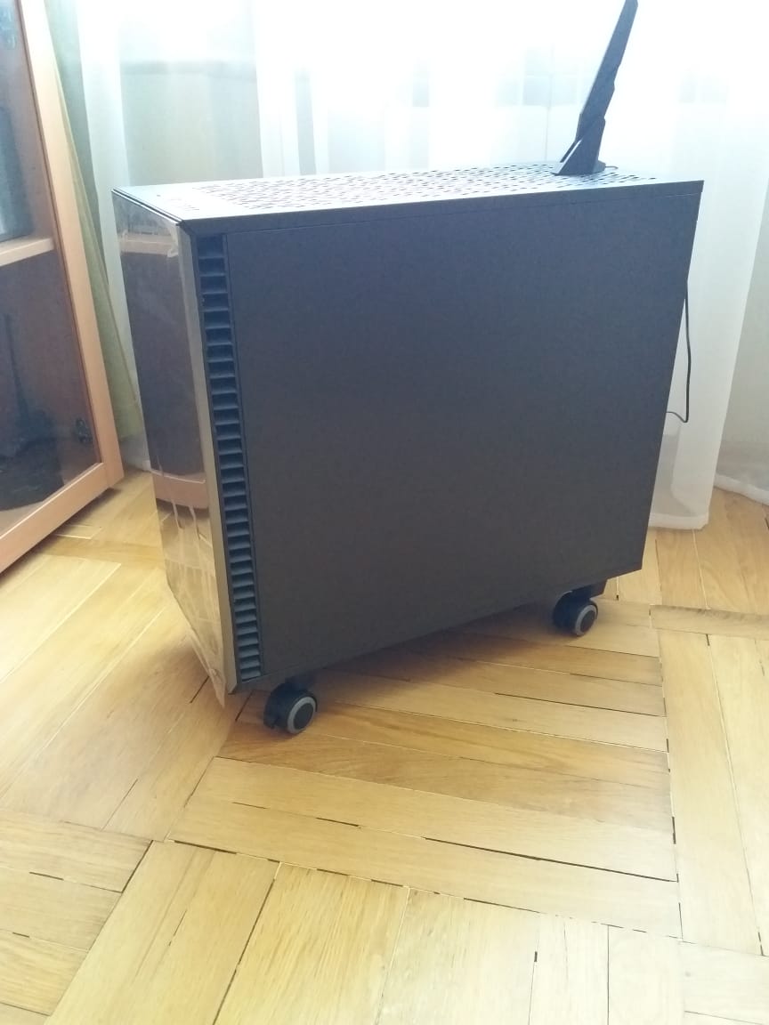 Поставил на колеса свой Fractal Define 7 - идеально подошли отверстия в ножках корпуса для установки стандартных мебельных колесиков (4 см) со стопорами на штифтах, стоят как влитые. Удобно перемещать корпус и расстояние до пола теперь 7,5 см.